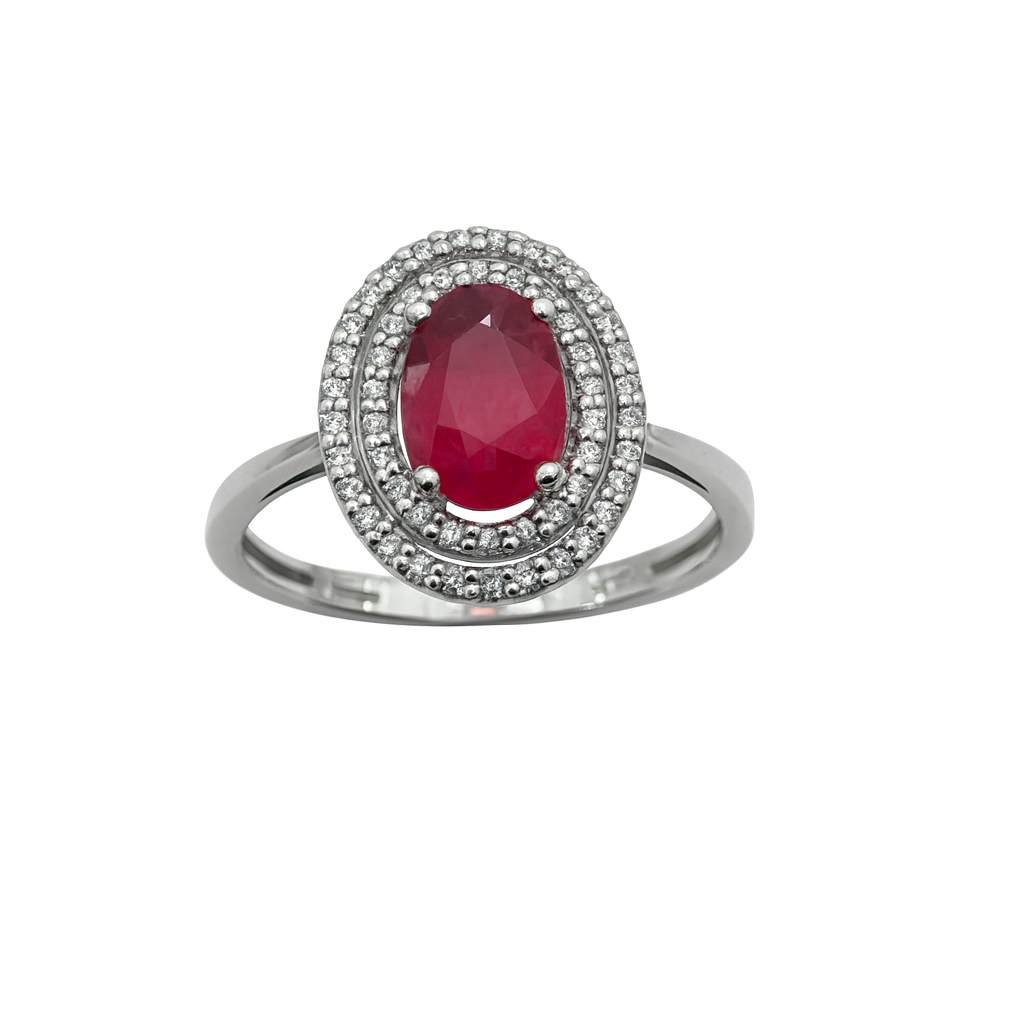 Bibigi Ring with Ruby-Emerald-Sapphire and Double Diamond Surround