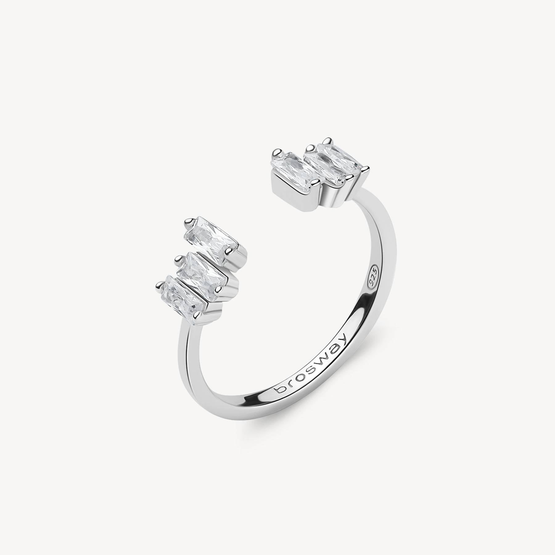 925‰ rhodium-plated silver ring with baguette cubic zirconia.