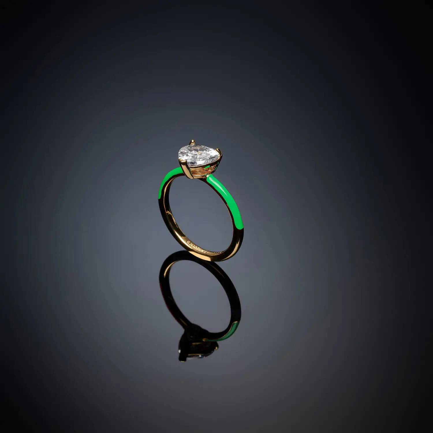 Women's ring from the Chiara Ferragni Love Parade collection. 18kt gold-plated solitaire ring, green enamel with a heart-shaped white zirconia. Discover the updated Ferragni collection; they're a true must-have this season.