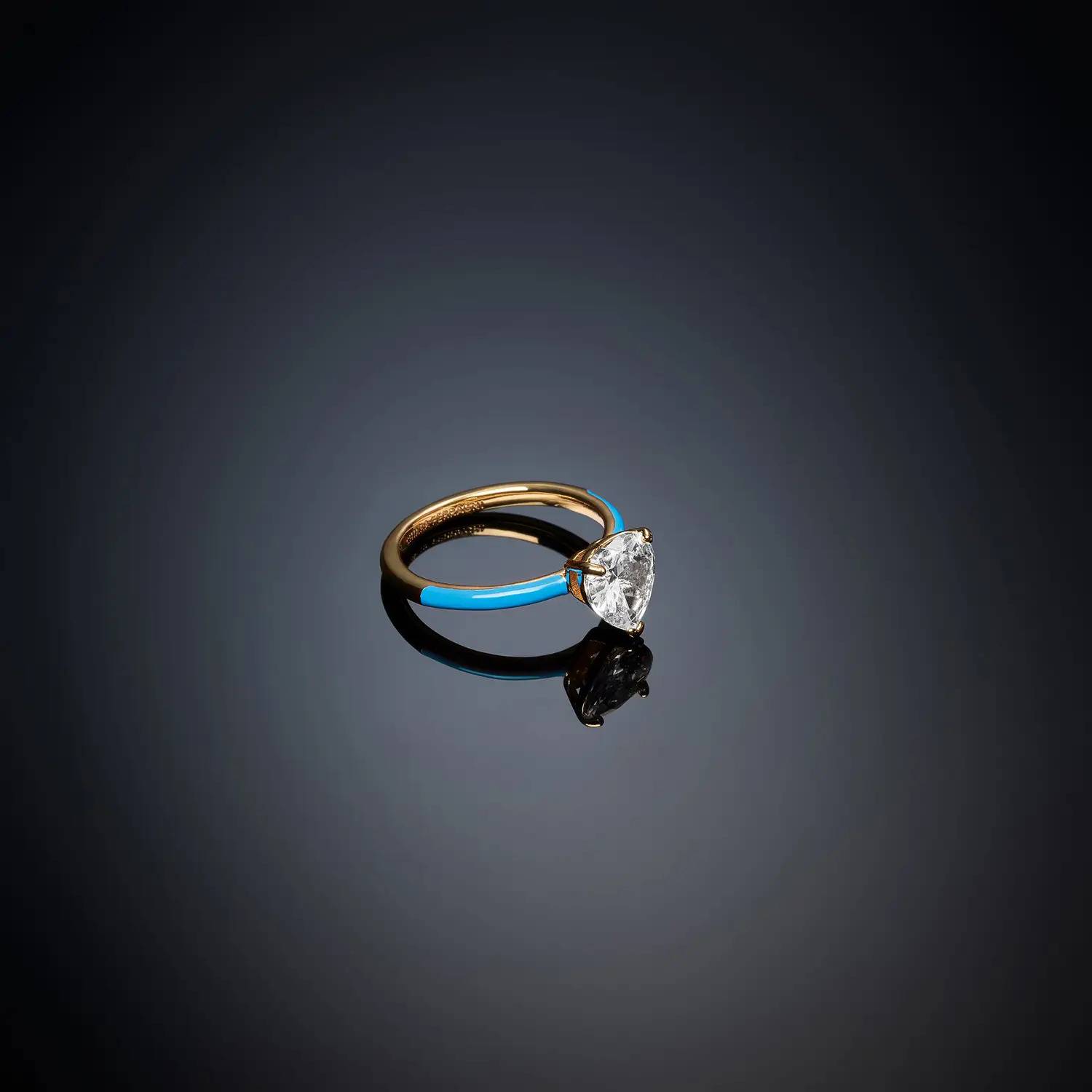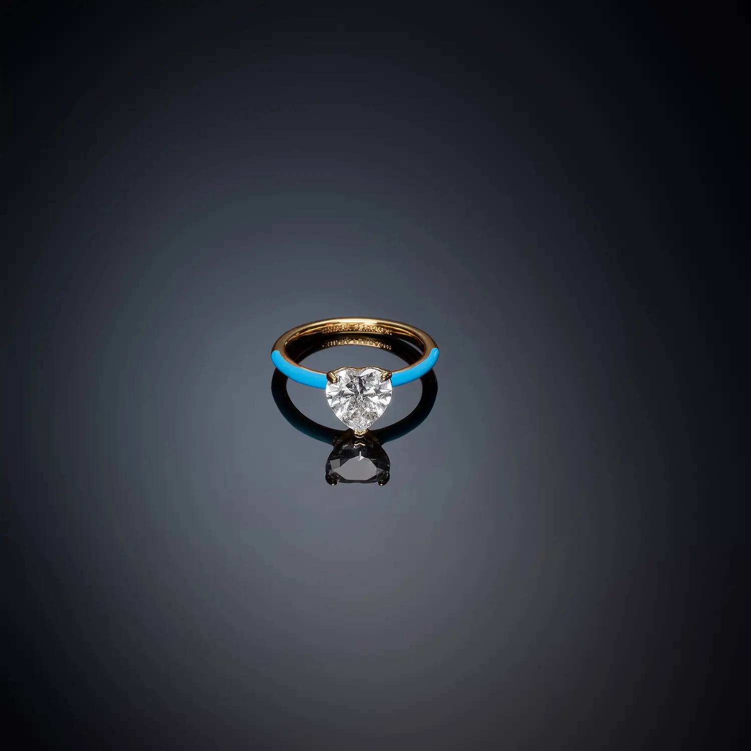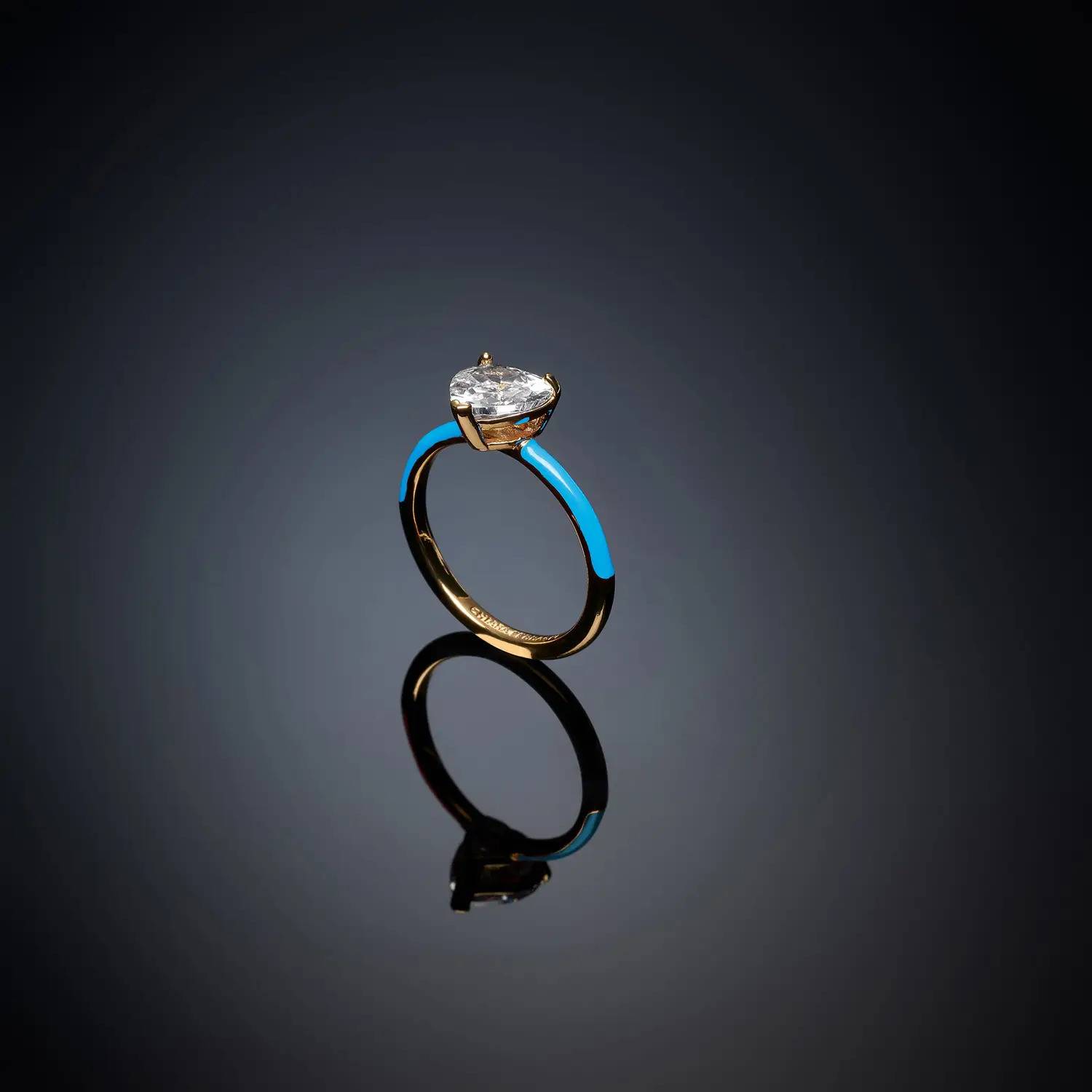 Women's ring from the Chiara Ferragni Love Parade collection. 18kt gold-plated solitaire ring with blue enamel and heart-shaped white zirconia. Discover the updated Ferragni collection; they're a true must-have this season.