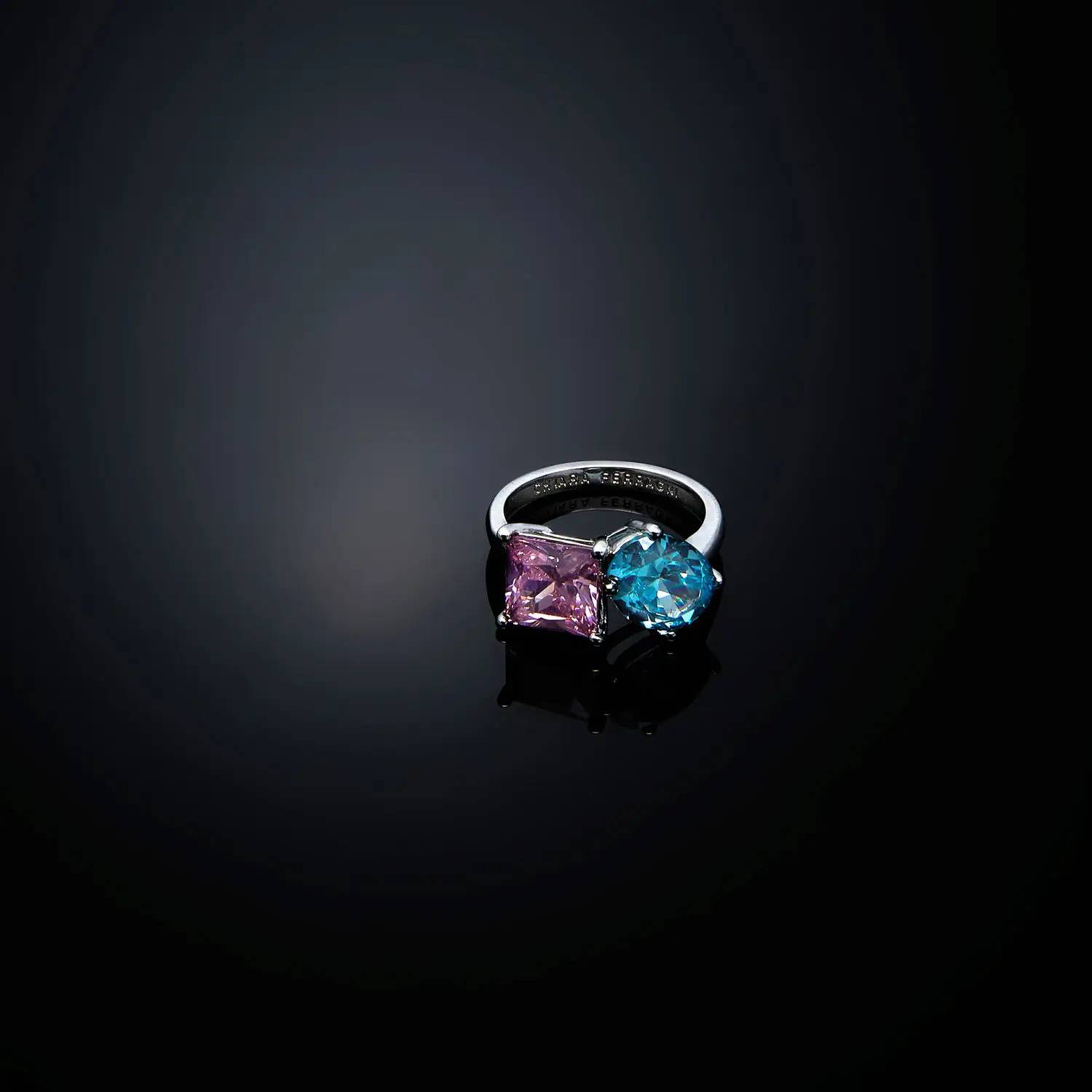 Chiara Ferragni Rainbow Collection women's ring. Rhodium-plated band ring with light blue and pink zirconia. Discover the updated Ferragni collection; they're a true must-have this season.