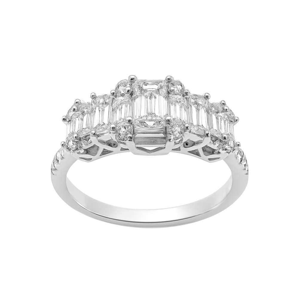 Giorgio Visconti Trilogy Ring with Emerald-Cut and Brilliant-Cut Diamonds