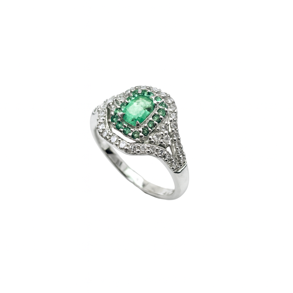 Iannelli Handmade White Gold Ring with Emeralds and Diamonds