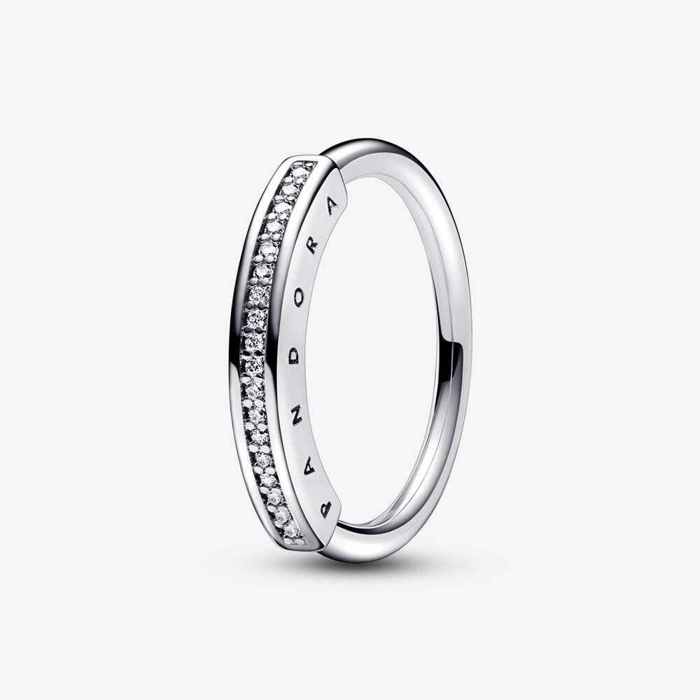 Add a touch of sparkling sophistication to your look with the Pandora Signature ID Pavé Ring. Crafted from 925 sterling silver, this sculptural piece features an iconic round and square profile, complemented by a row of pavé. Wear it alone for an elegant and dramatic look, or pair it with other rose gold pieces for a statement look.