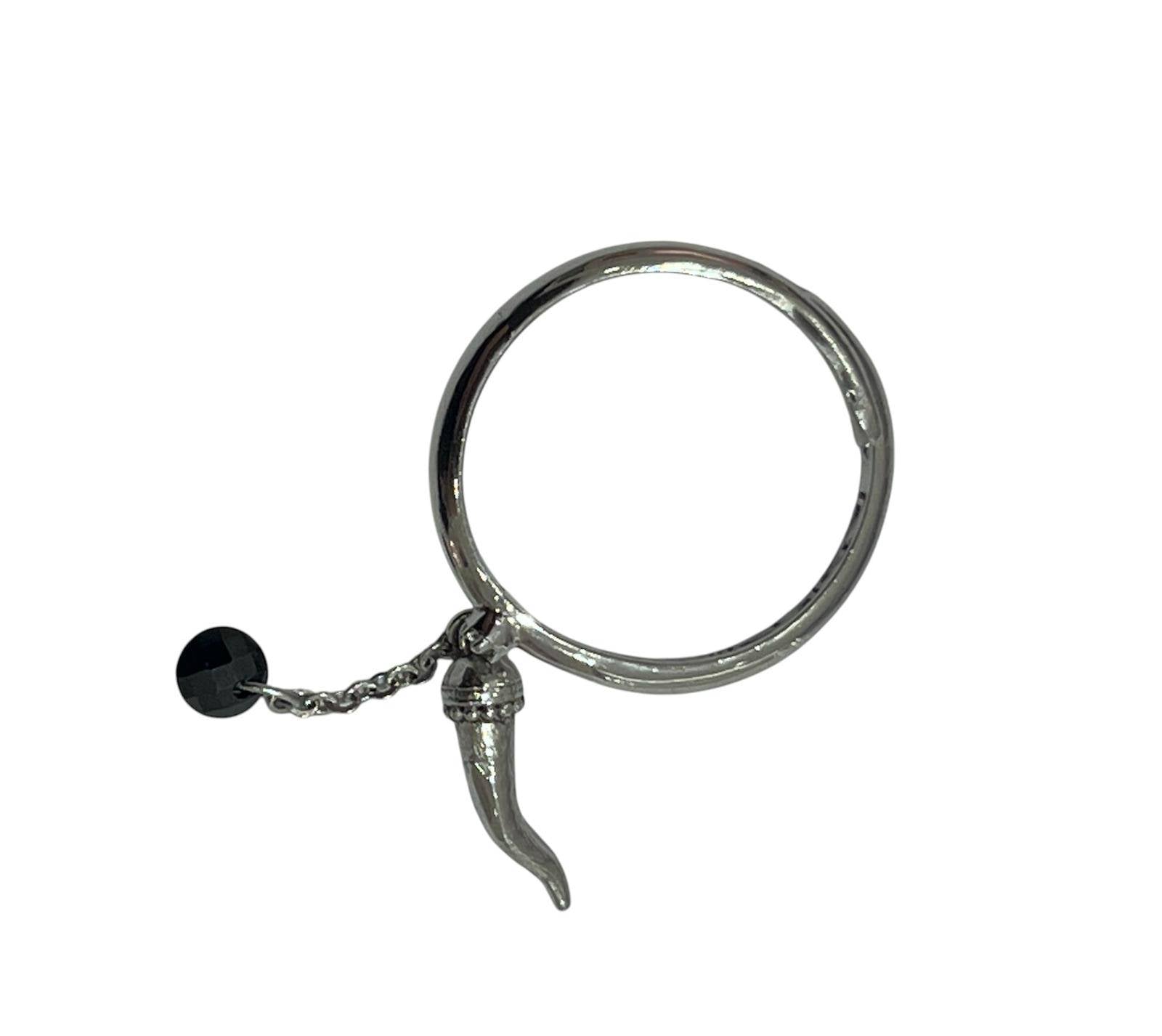 Rebecca ring from the Lucciole collection in hypoallergenic 925 silver with a horn and black zirconia pendant.