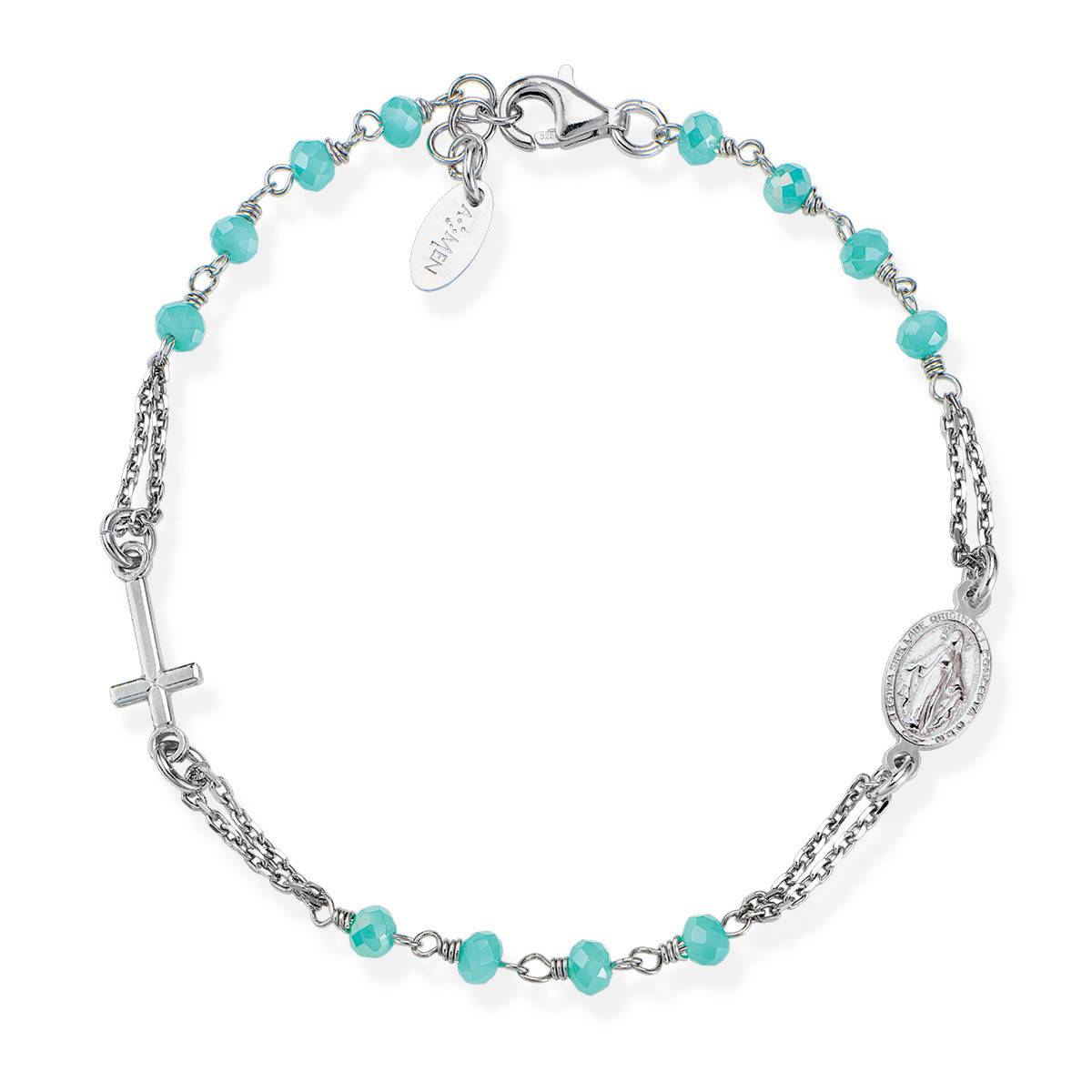 It's often difficult to combine the idea of faith with jewelry, but Amen bracelets express it through simple and elegant designs. This bracelet is crafted from 925 sterling silver with aquamarine crystals and features delicate symbols of the cross and medallion. This is a piece of jewelry you can wear at all times. It's a way to carry a tangible sign of your devotion!