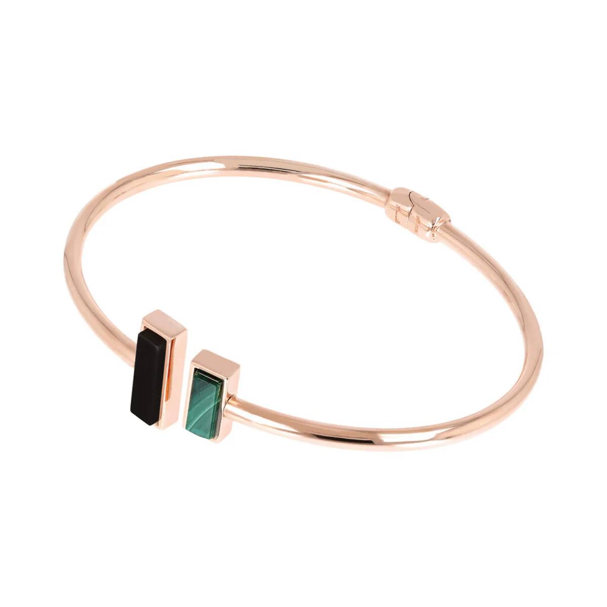 The Alba collection expands with a bangle bracelet featuring square stones and a spring opening. This 18-karat rose gold-plated piece with understated lines is ideal for everyday wear. Pair it with the matching necklace or other pieces from the collection.