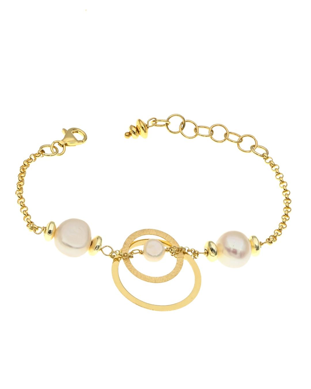 Koliè bracelet in 925 silver with 18 kt yellow gold plating and natural pearls.
