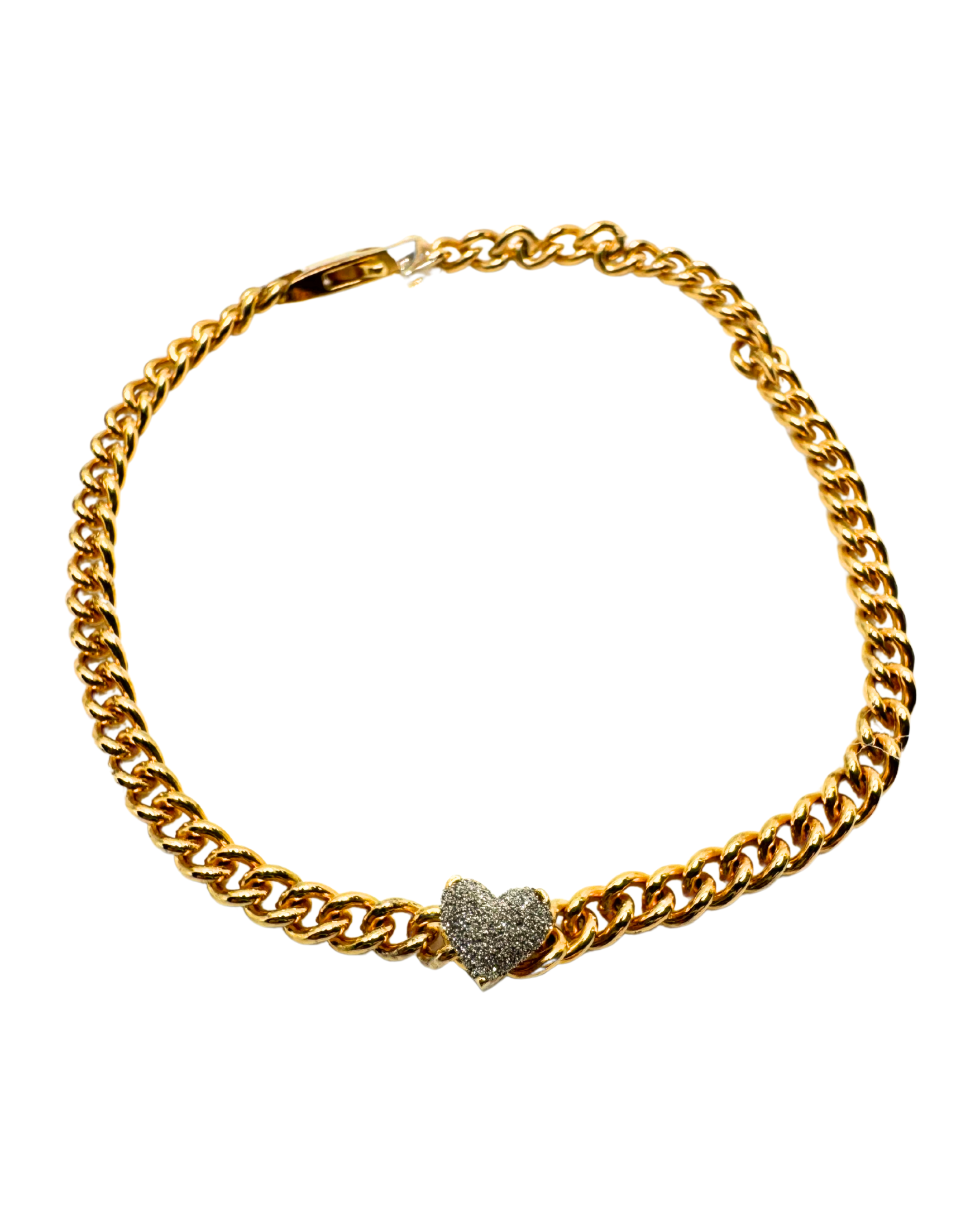 Women's bracelet from the Jolie collection in 925 silver. Curb bracelet with heart in yellow gold-plated silver and 0.15 ct diamond powder.
