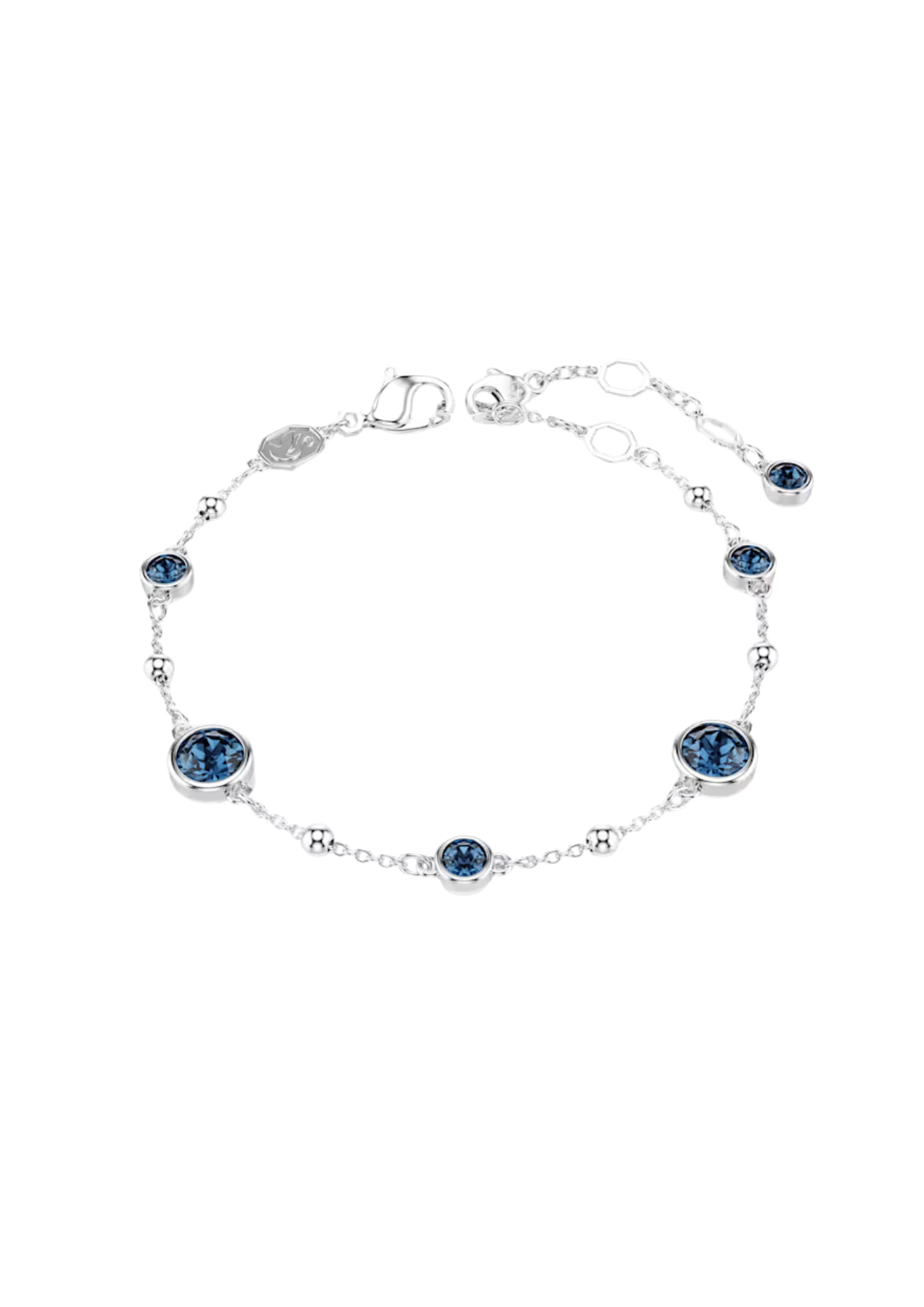 With its dynamic mix of shapes, this Imber bracelet will add a distinctive sparkle to your wrist. The rhodium-plated chain features a lobster clasp and a strand of metal drops, interspersed with round blue crystals in a refined bezel setting. The bracelet also includes an extension, allowing it to fit all sizes. Perfect for adding a soft, elegant touch to any outfit.