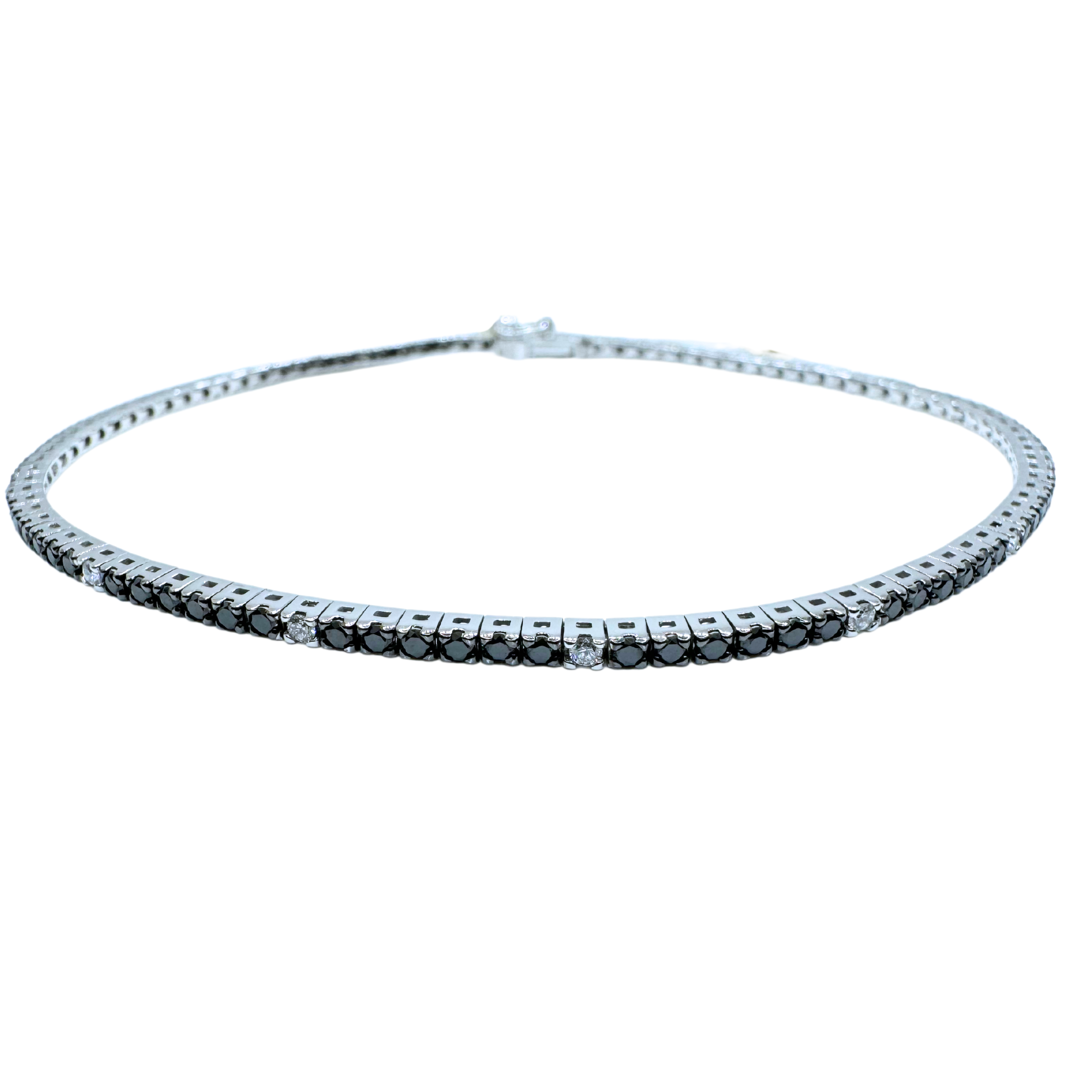 Mirco Visconti Tennis Bracelet in White Gold with Alternating Black and White Diamonds