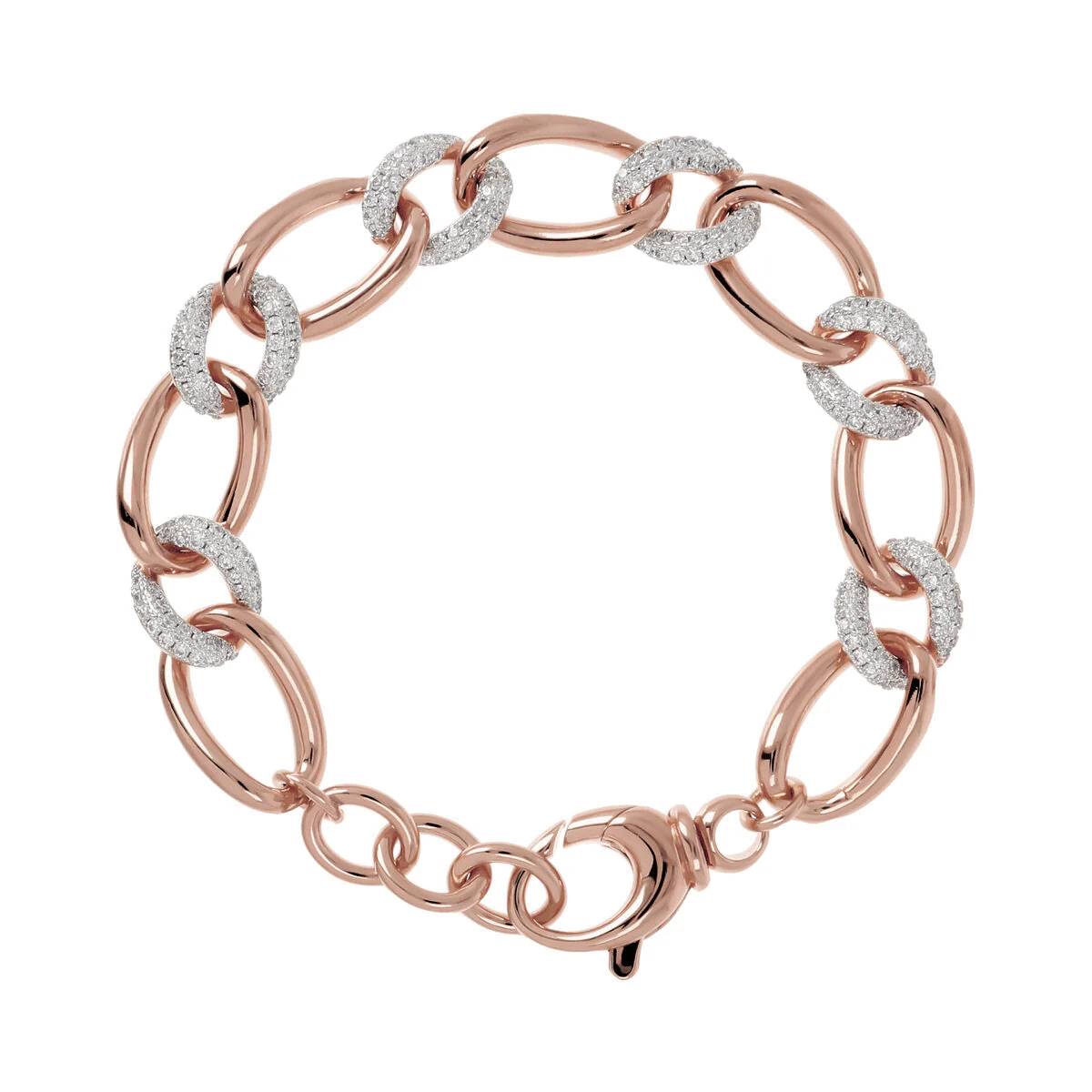 Bronzallure bracelet crafted from Golden Rosé, plated in 18kt rose gold, embellished with oval links alternating with small twisted pavé-set cubic zirconia roundels, creating a luminous quality. It features a lobster clasp with extender. This elegant creation, perfectly designed to make your look shine, is ideal for pairing with the wide range of jewelry from the Altissima collection, designed for special occasions or to add a touch of sophistication to everyday life.