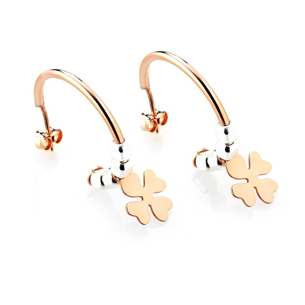 Marcello Pane's 925 silver hoop earrings with vines. Hoops composed of 4 silver nuggets and a pendant four-leaf clover.