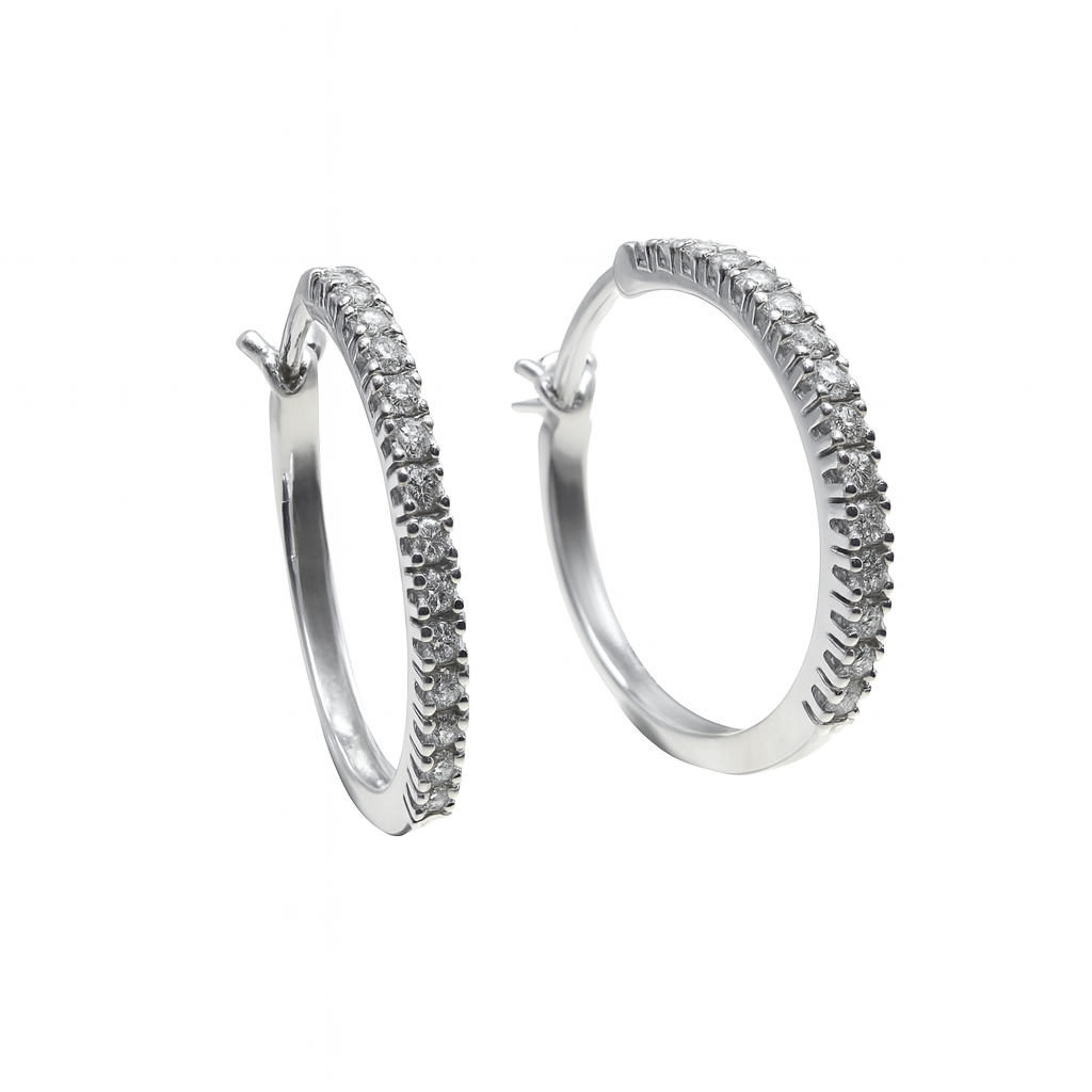 18KT White Gold Hoops with Zircons