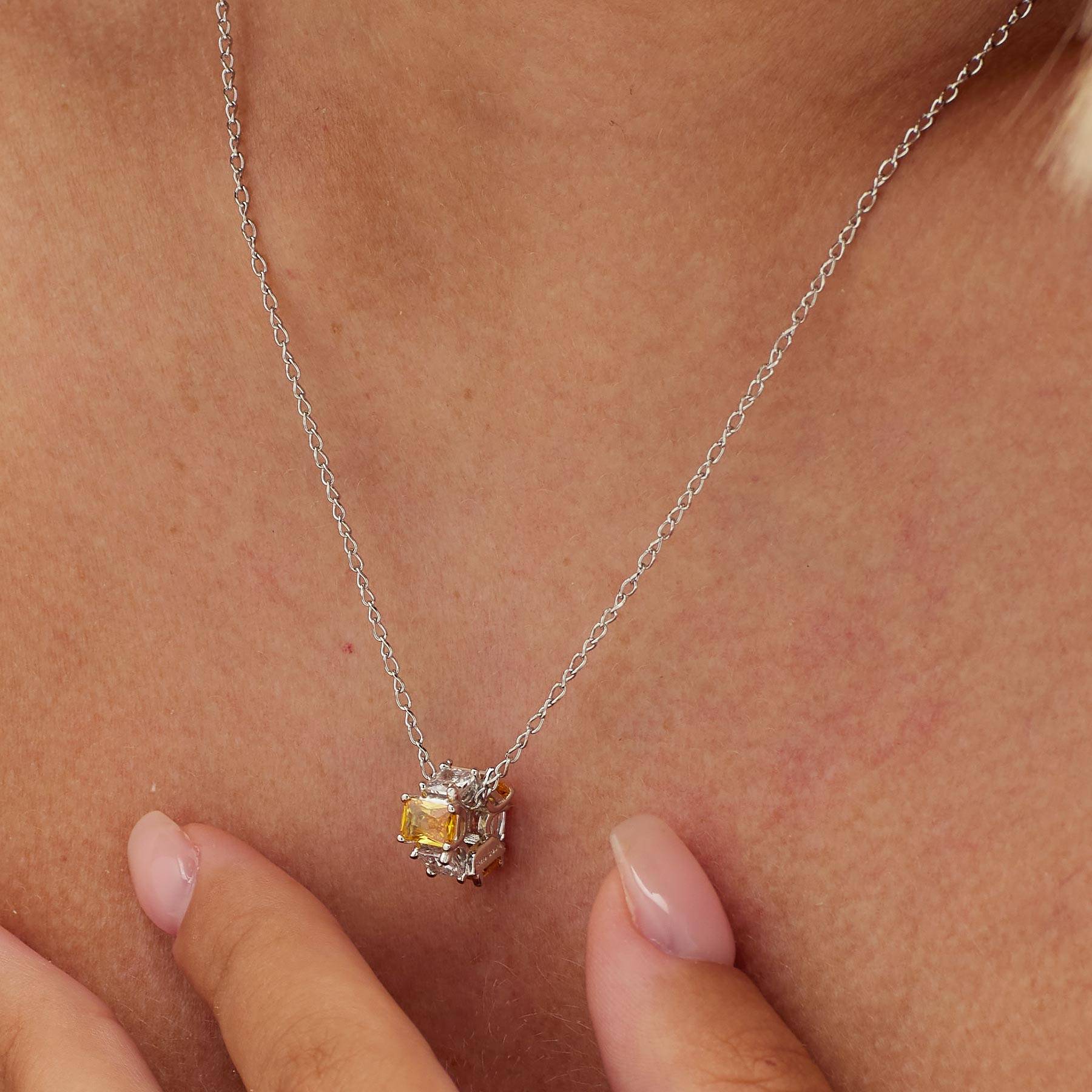 Color charm in 925‰ rhodium-plated silver with clear square cubic zirconia and golden yellow baguette cubic zirconia.