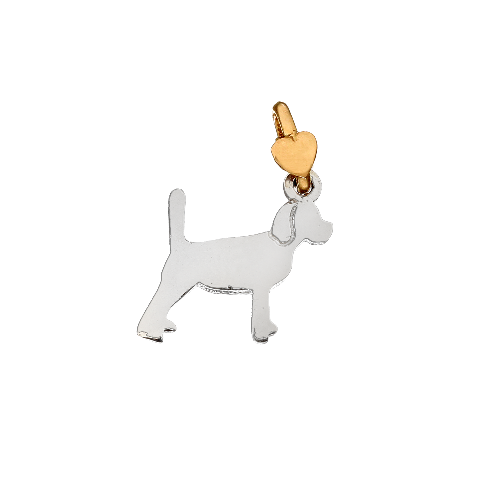 Dog pendant from the DOGS collection: our canine friends from the magical world of nature. Beagle motif. Available in 925°/°° silver with a 9kt yellow gold heart clasp.