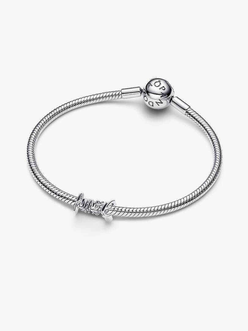 Celebrate love with this eye-catching charm. Crafted from 925 sterling silver, it features the word AmorE handwritten in openwork, a playful expression of love.