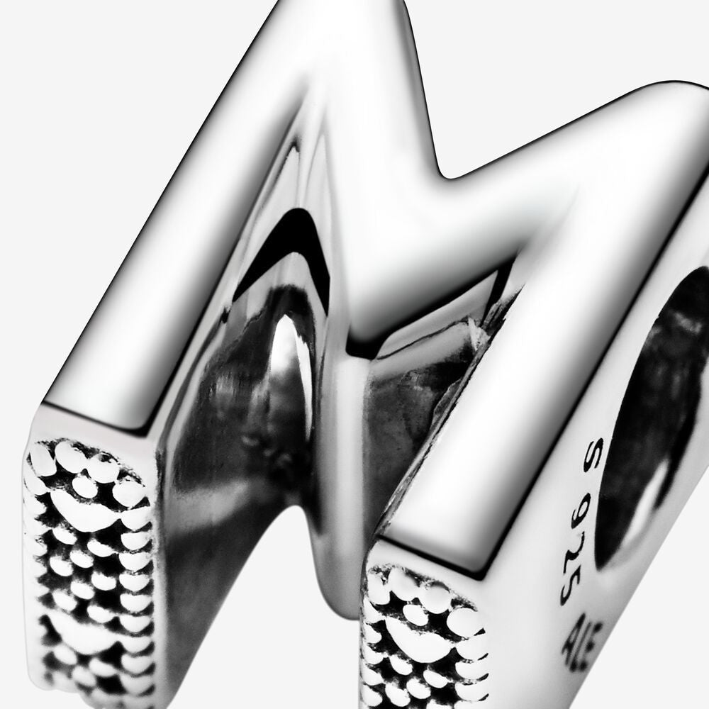 Tell your story with our alphabet-inspired charms that let you spell out the words that mean the most to you. Add meaningful initials to your Pandora Moments bracelet or create a personal message with the letter M. The reversible charm crafted from sterling silver is polished on the front and features raised hearts and spheres on the back. Add this piece to your charm collection or gift it to someone who has a special connection to this letter.