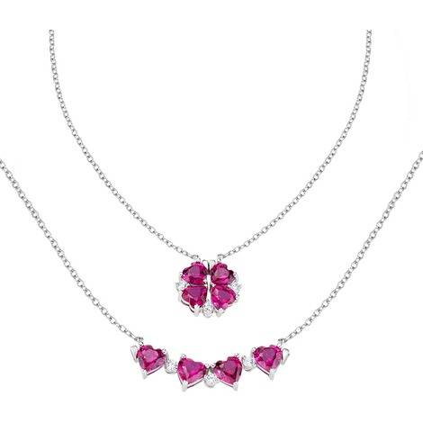AG925 necklace with magnetic Quadricuore, heart-cut red zirconia and white zirconia - Rhodium - Length 40 + 5 cm - Closed Quadricuore ⌀ 1 cm