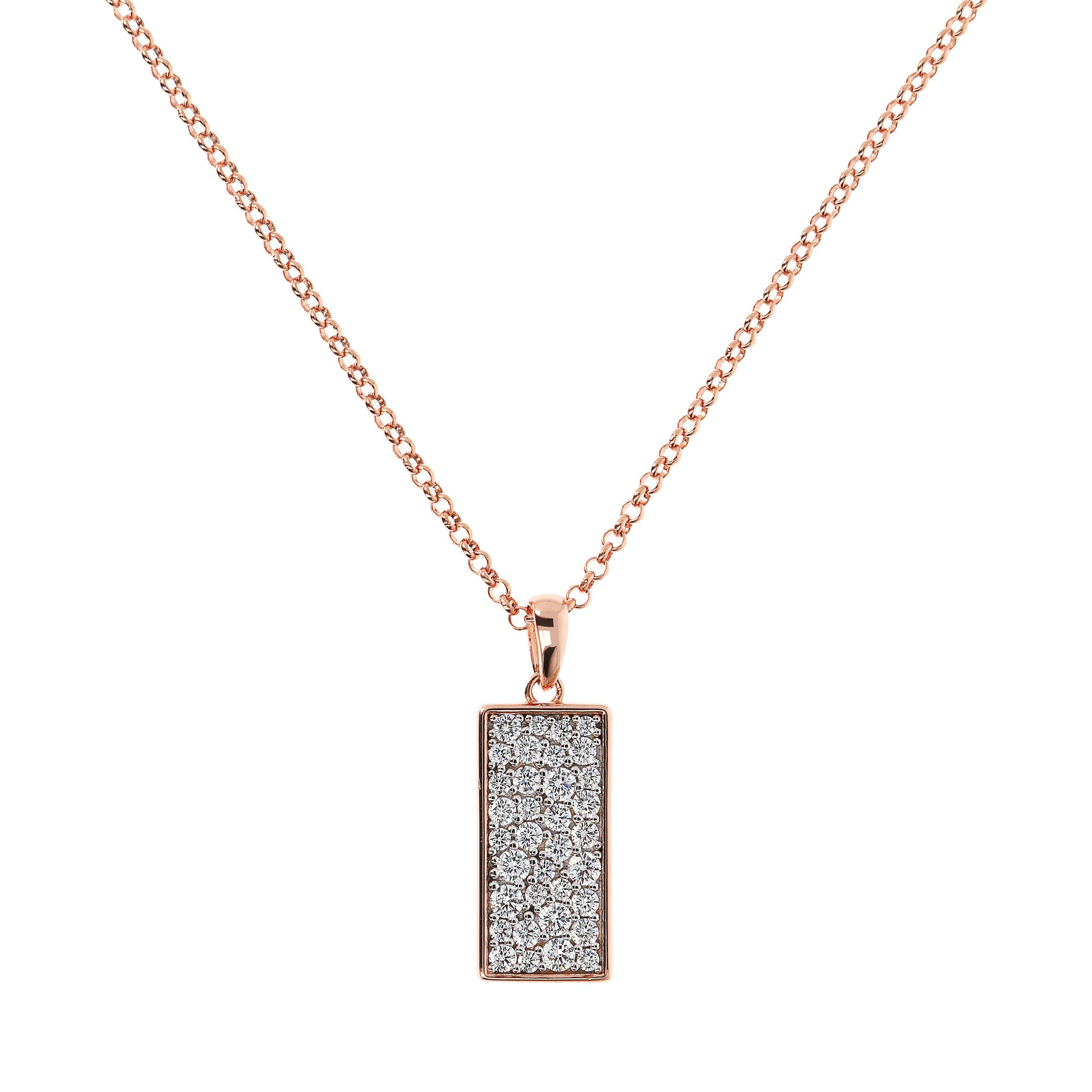 Bronzallure Rectangular Necklace in 18kt rose gold-plated rose gold with a rectangular pendant set with white cubic zirconia pavé. For those who love being unique with an original detail.