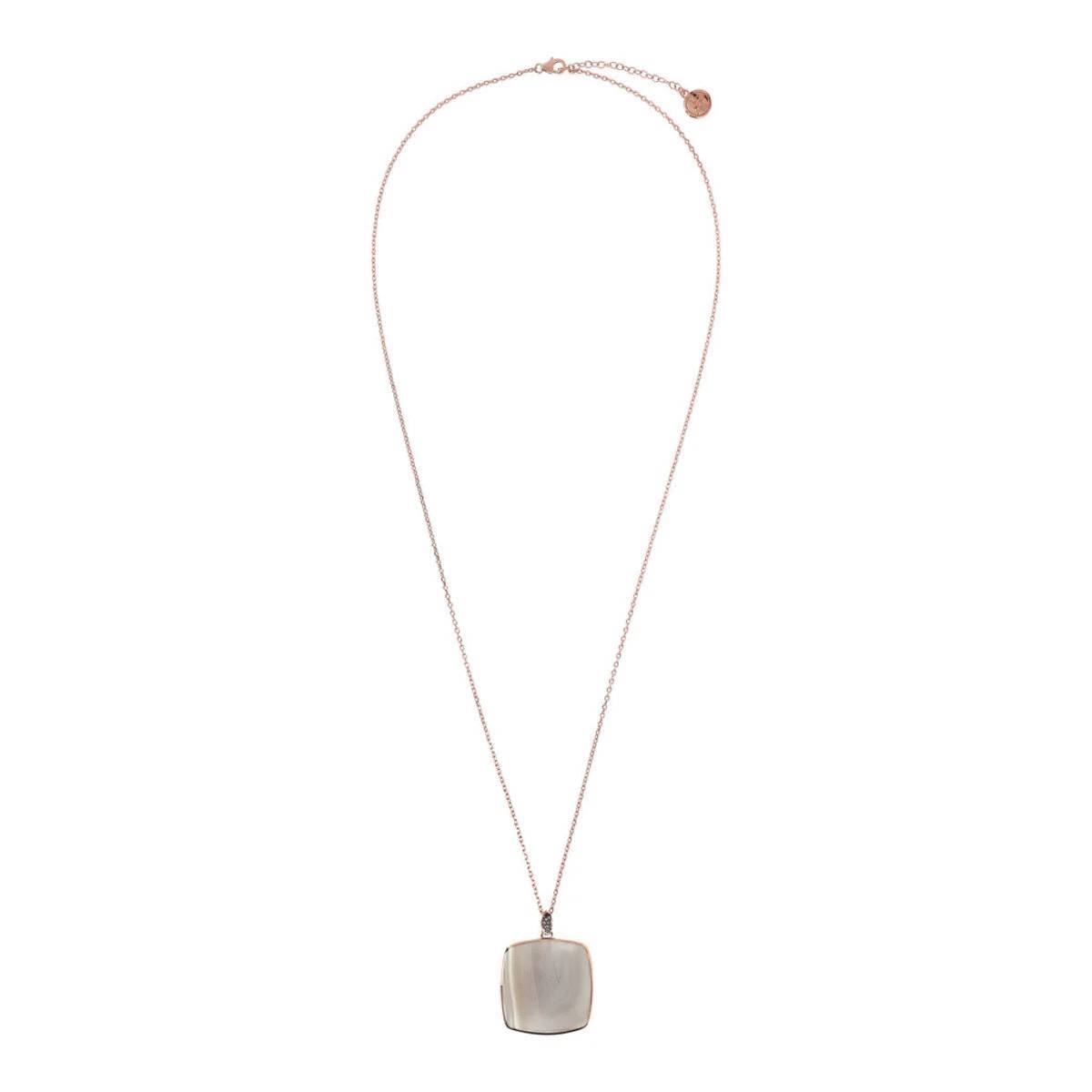 This long Bronzallure necklace features a square natural stone pendant and a pavé link. This 18-karat rose gold-plated Golden Rose jewel features a refined and elegant thin chain. Pair this necklace with matching rings and other jewelry from the Preziosa collection.