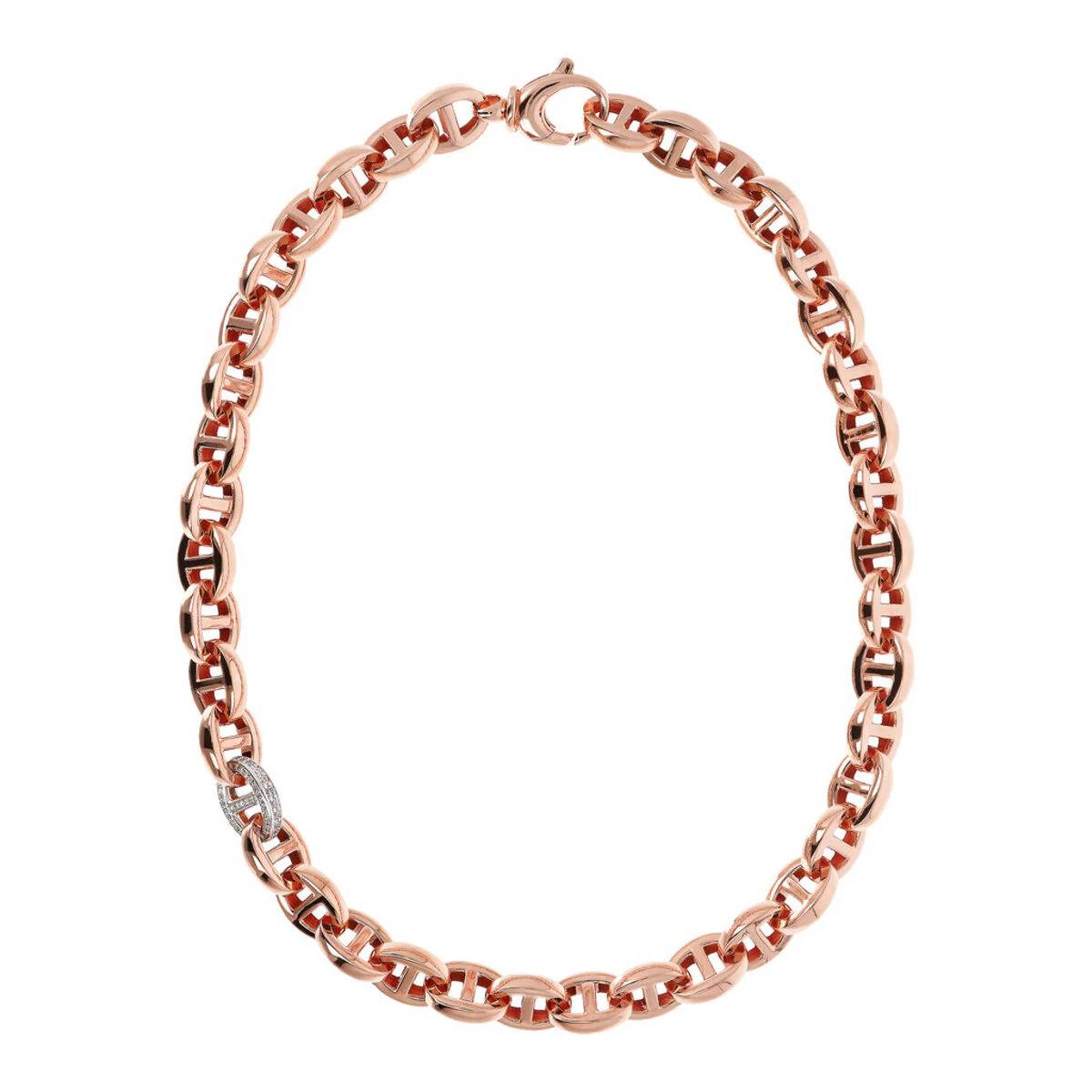 Bronzallure necklace crafted from Golden Rosé alloy, plated in 18kt rose gold, featuring a marine link with pavé cubic zirconia detail and a lobster clasp closure. An elegant creation, the perfect design to make your look shine.