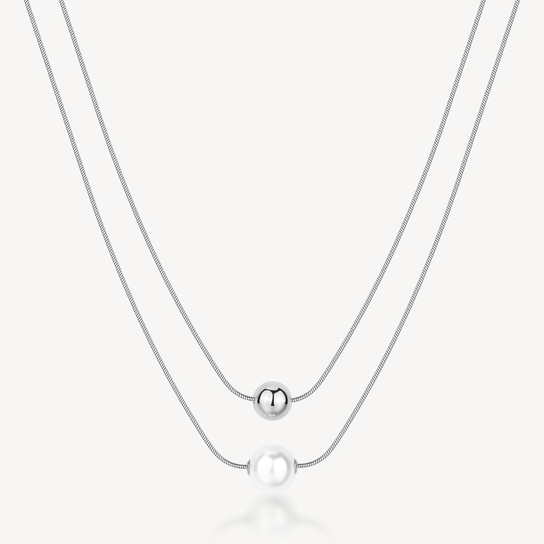 Double-strand 316L steel choker necklace with sphere pendant and shell pearl.
