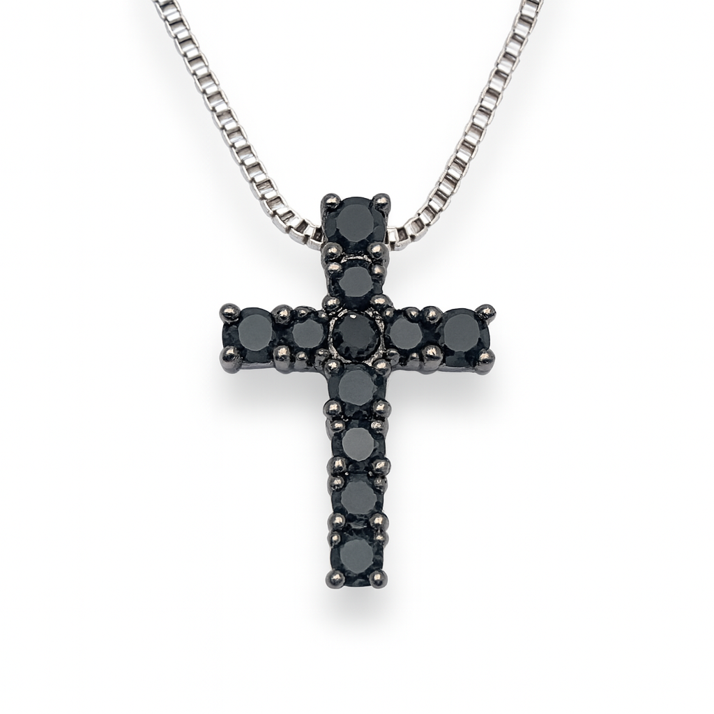 Davite&Delucchi Men's Necklace with Pendant Cross and Black Diamonds