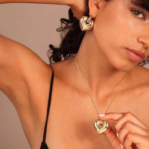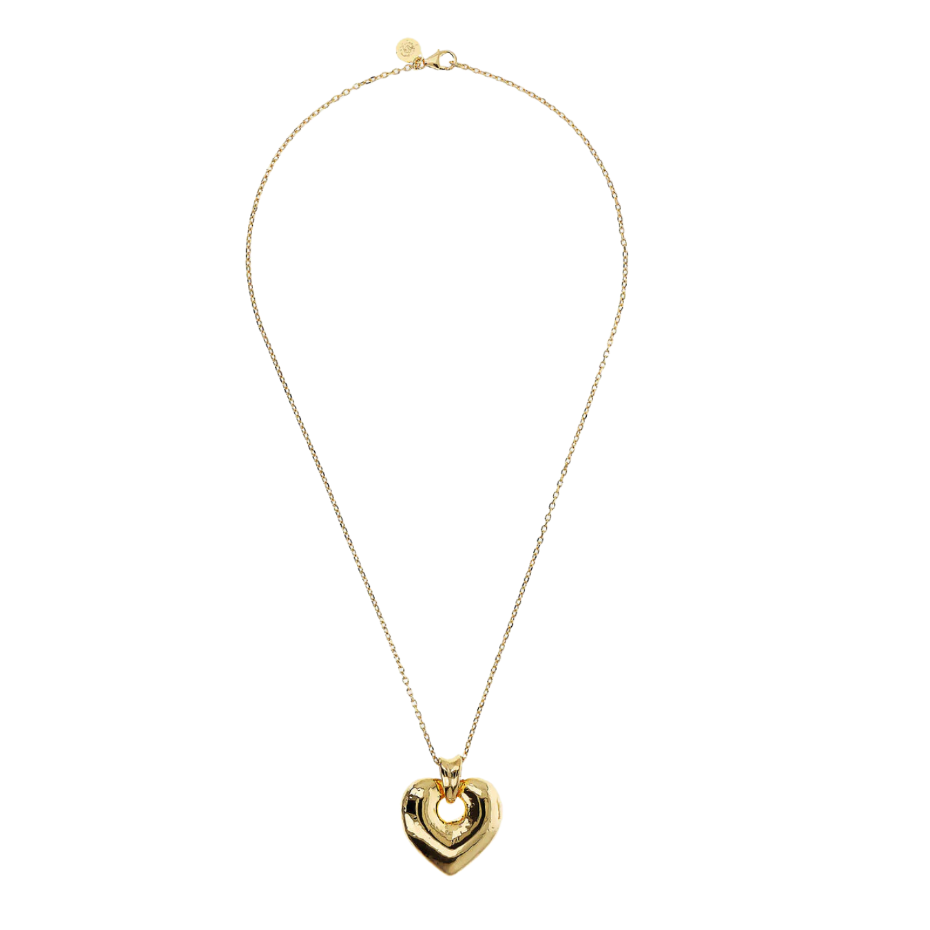 Etrusca Gioielli necklace made of golden alloy, plated in 18kt yellow gold, with a cable chain and a hammered, rounded heart-shaped pendant. Length: 50 cm. Lobster clasp closure.
