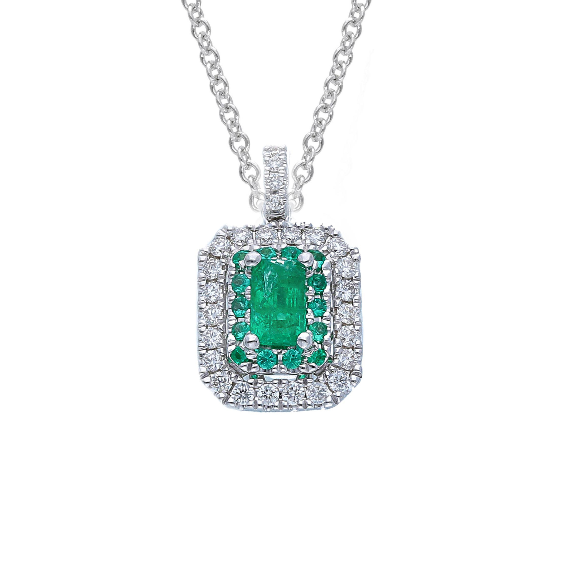 Iannelli Hand Made White Gold Necklace with Pendant with Natural Emeralds and Diamonds