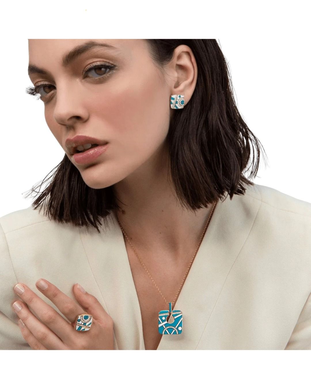 Dreams Pendant necklace in 925 silver, yellow gold plated, with blue and white enamel and white zirconia. 50 cm long rolo link chain.