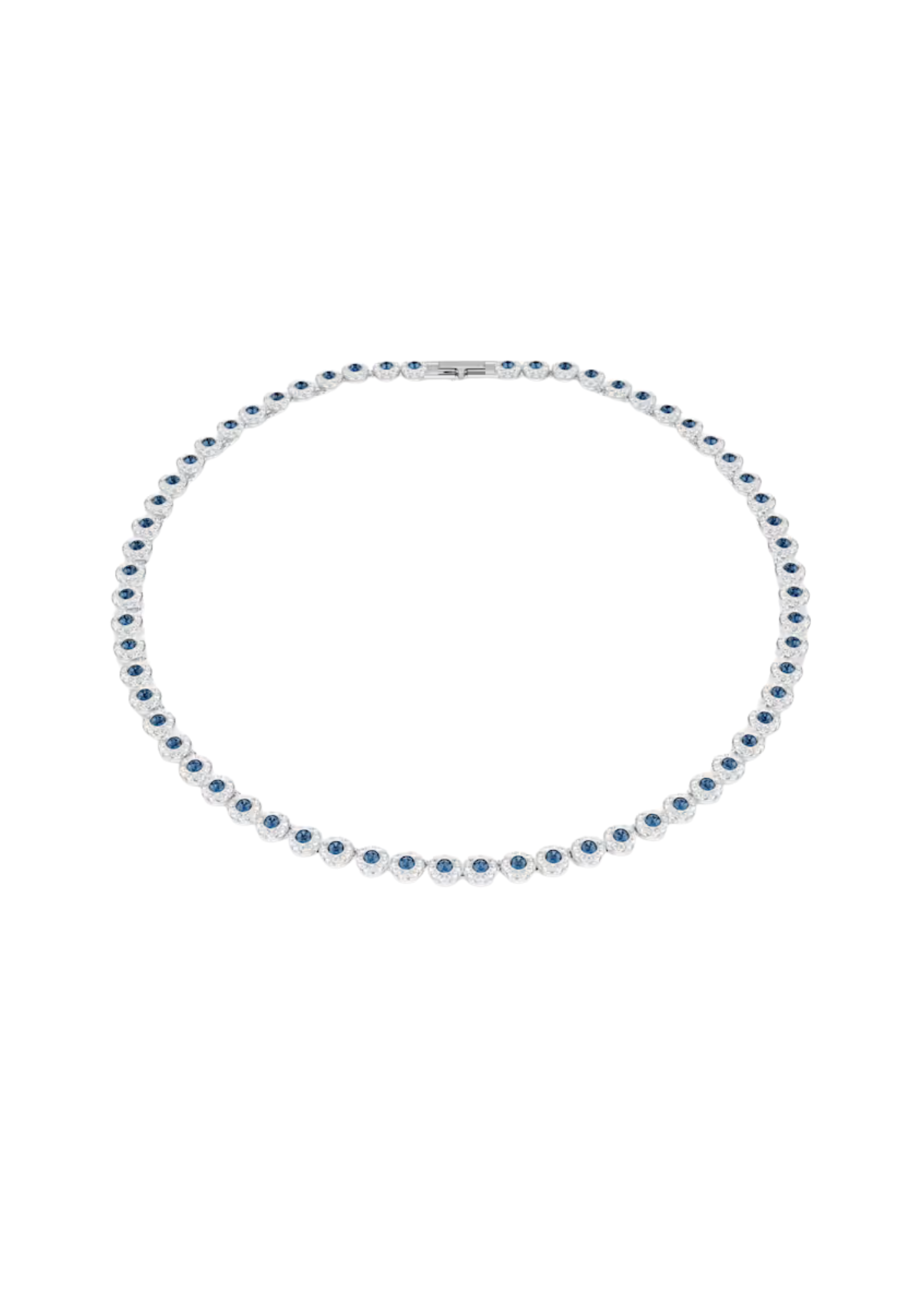 Achieve 360-degree radiance with this vibrant version of the Una Angelic tennis necklace. Combining blue crystals and sparkling pavé, the rhodium-plated design will add beauty to any moment. This timeless piece features an adjustable extender and is easy to combine with other pieces from the same collection. Length (minimum - maximum): 38 - 40 cm.