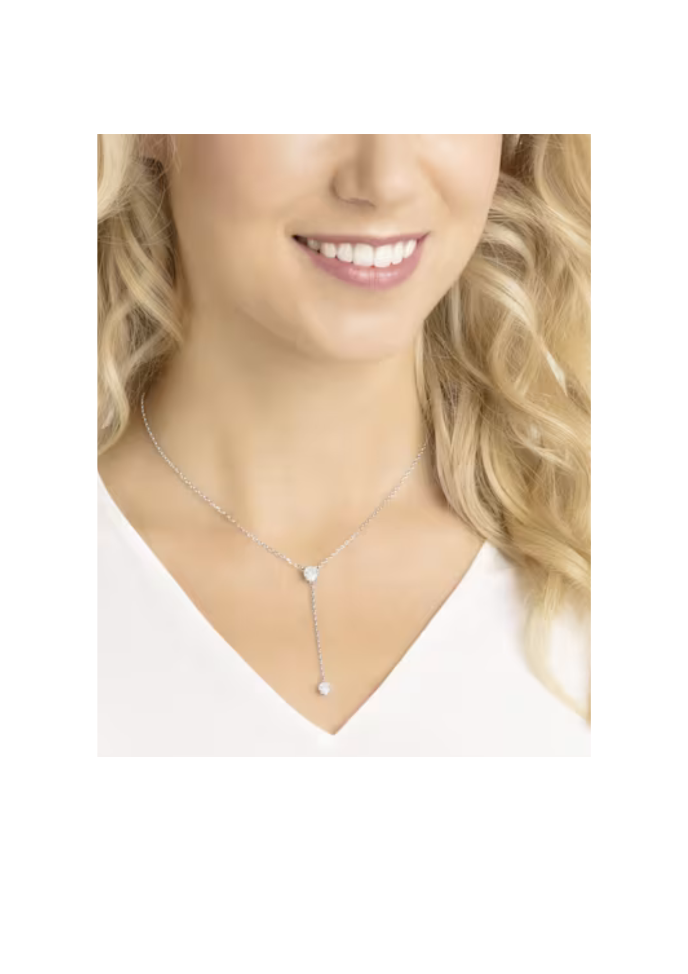 Simply crafted and infused with color, this necklace is a pure expression of Swarovski's joyful style. The rhodium-plated design features a round-cut blue crystal at its center, with a clear Swarovski zirconia suspended below from a delicate chain. Wear this light-catching creation to brighten your look for any special occasion. Length (minimum - maximum): 30 - 46 cm.