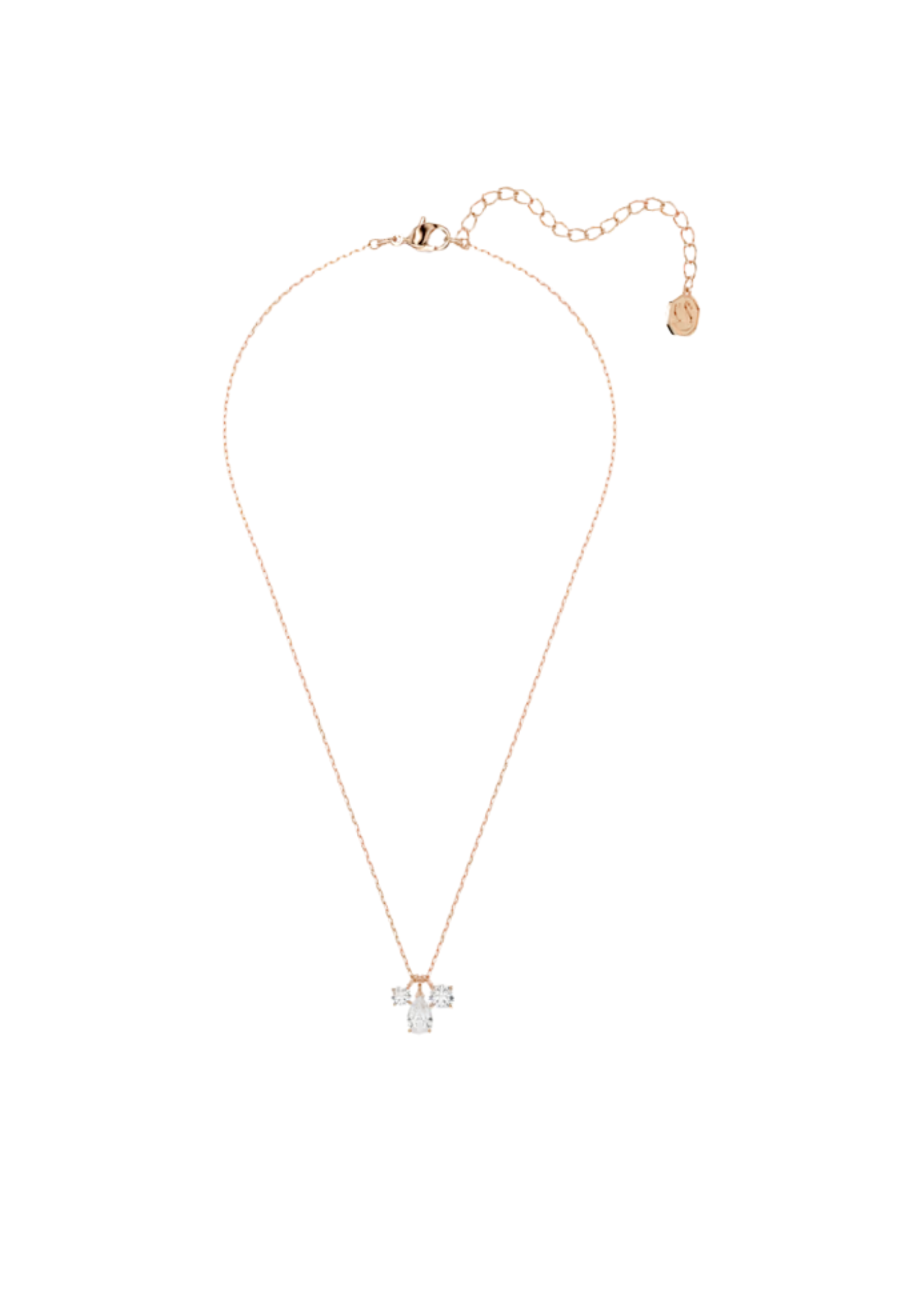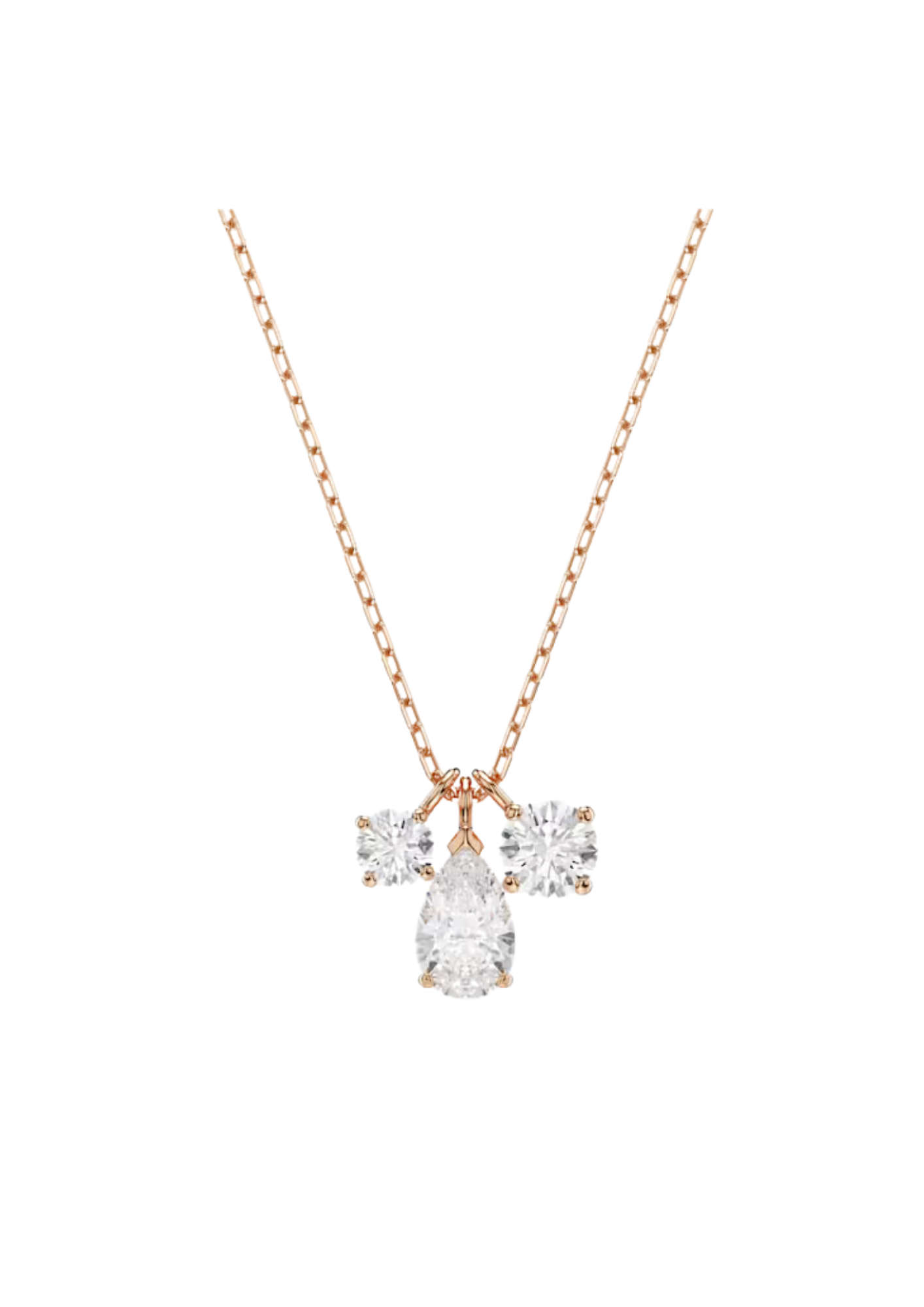 For an expression of refined craftsmanship, this Mesmera pendant is embellished with three sparkling Swarovski Zirconia stones, including a teardrop-shaped center stone, complemented by two smaller round stones on either side. Delicate facets create a refined yet simple look, perfect for enhancing everyday outfits with a touch of sparkle. This rose gold-tone-plated pendant hangs from a delicate chain and is perfect for pairing with similar pieces from the same family. Length (minimum - maximum): 40 - 45 cm