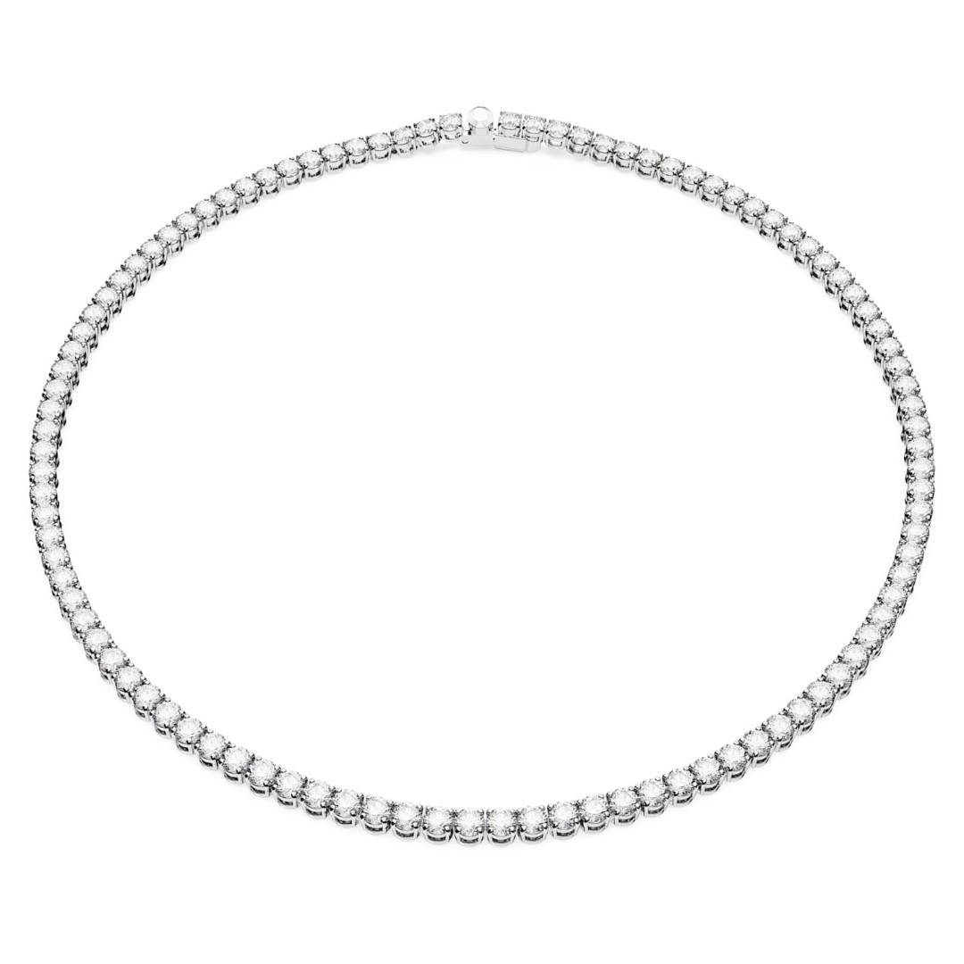 Swarovski Matrix Tennis Necklace with Round Cut Stones, Rhodium Plated