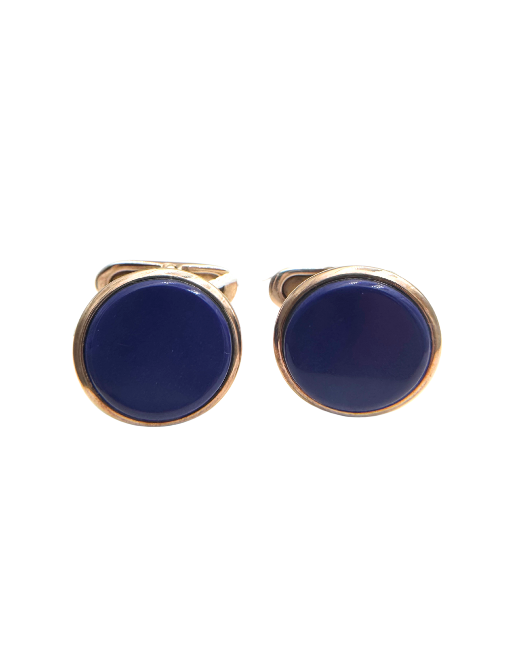 Round 925% rose silver cufflinks for men with lapis lazuli.