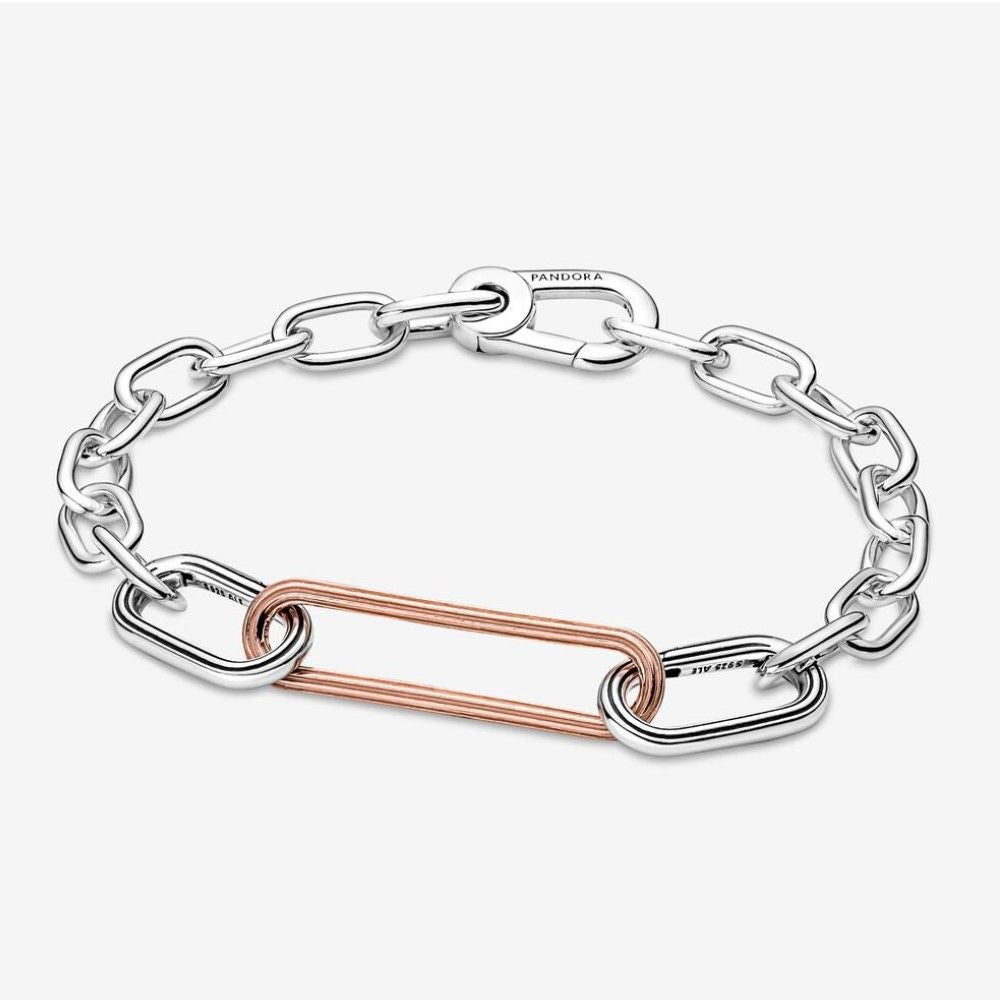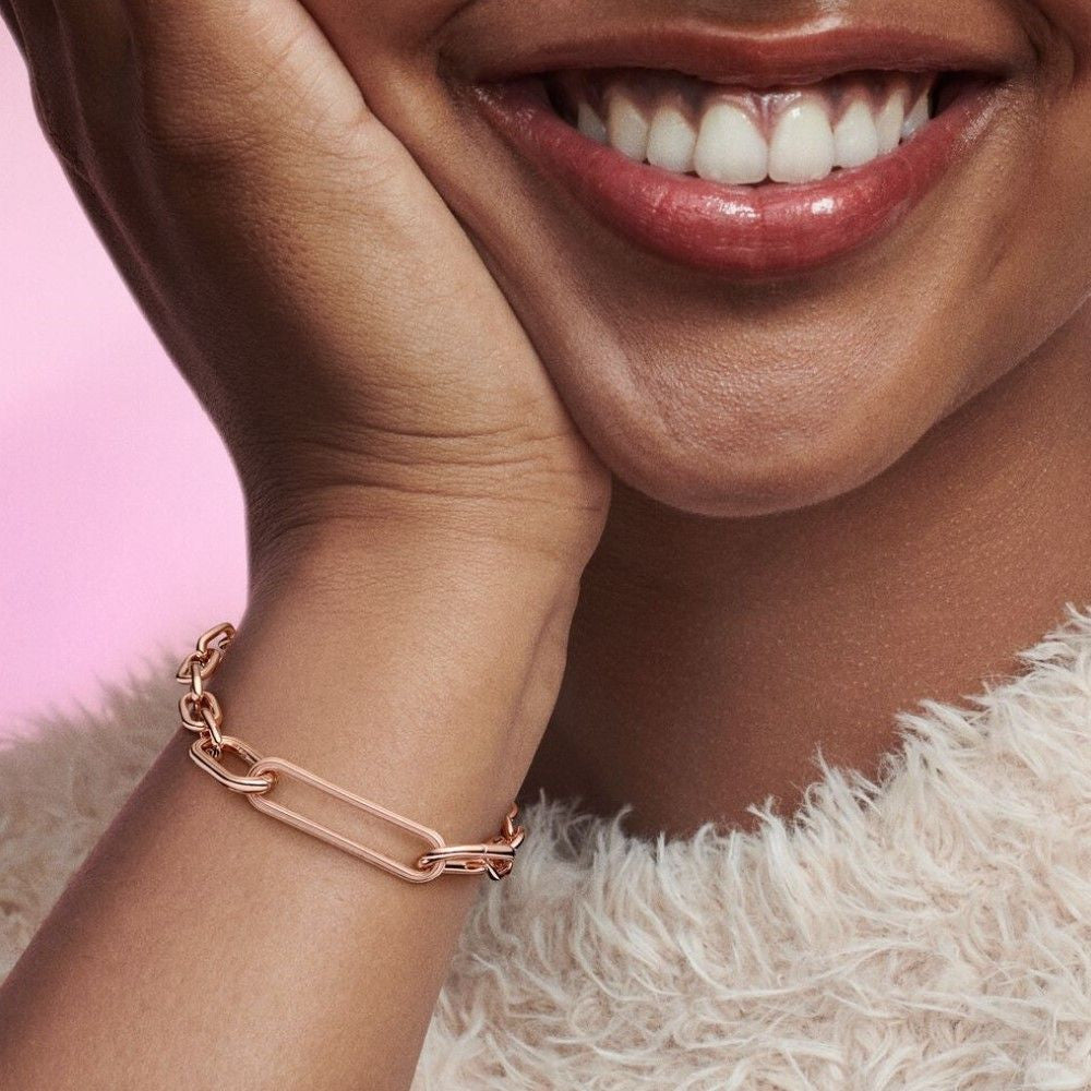 Take customization to the next level with this 14k rose gold-plated Pandora ME link. Featuring grooved lines running around its surface, this versatile piece can be slid between connectors, meaning you can mix and match different metals on chain necklaces and bracelets, and even hoop earrings, unlocking endless styling possibilities. Once you've found a look you love, combine the Pandora ME link with lockets to truly express your personality.