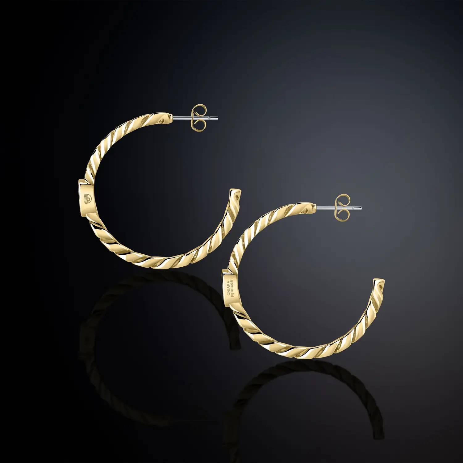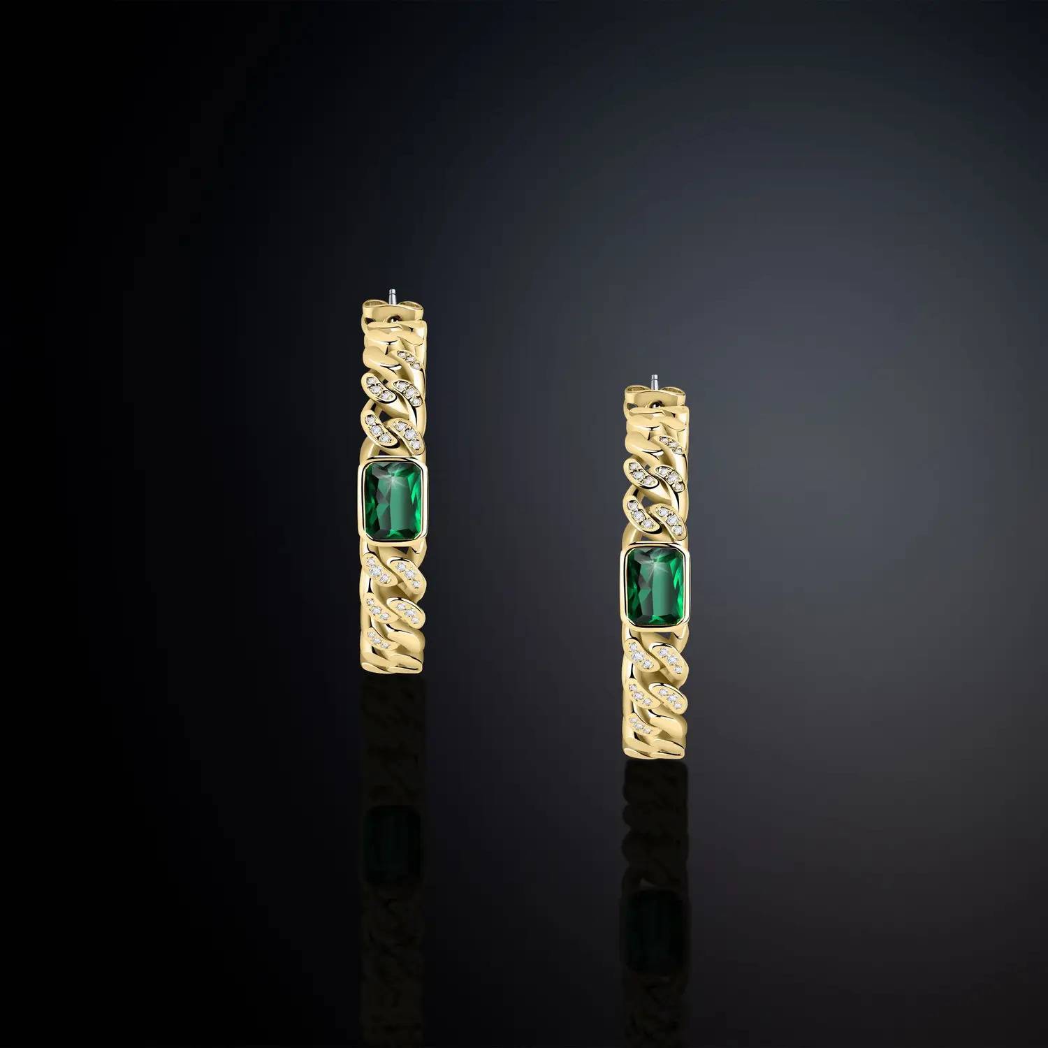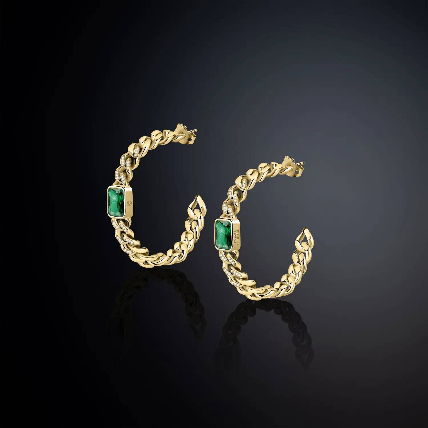 Women's earrings, Chiara Ferragni Bossy Chain collection. 18k gold-plated curb earrings with an emerald-cut green stone and white zirconia on the sides. Size: 40mm. Discover the new, updated Ferragni collection; they're a true must-have this season.