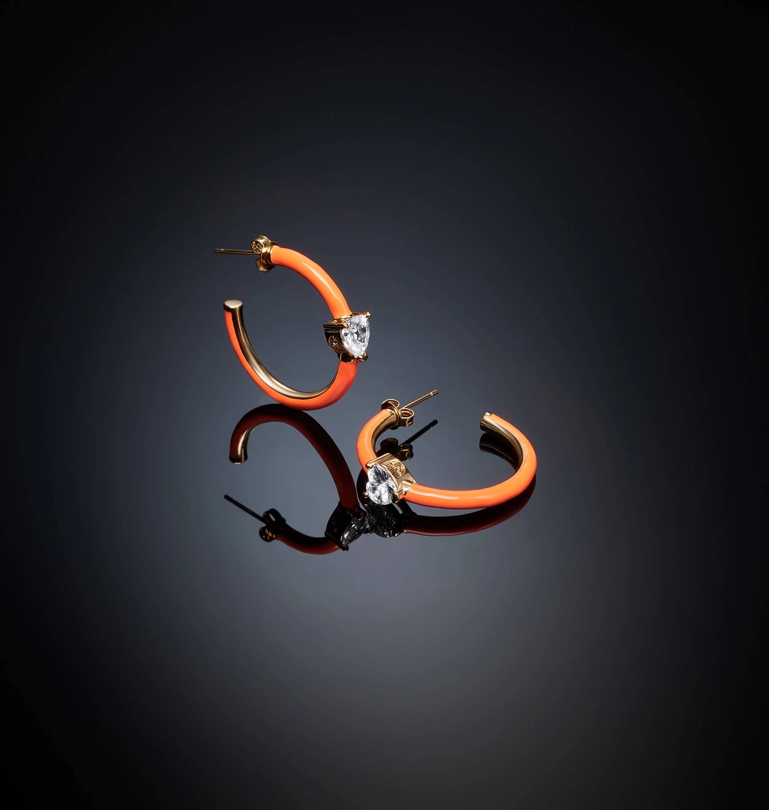 Women's earrings from the Chiara Ferragni Love Parade collection. 27mm enamel earrings with heart-shaped white zirconia in 18K gold plating. Discover the new, updated Ferragni collection; they're a true must-have this season.
