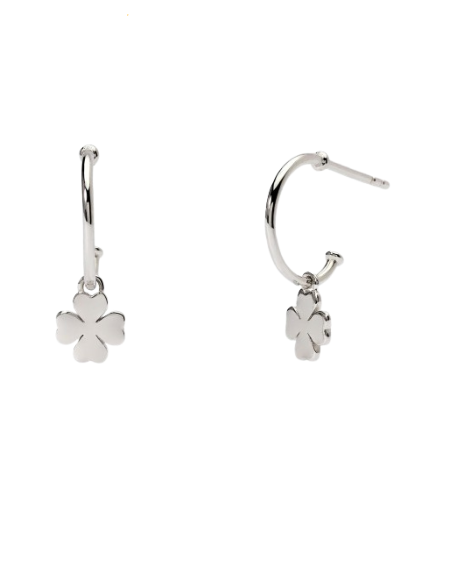 925 silver hoop earrings with a screw by Marcello Pane. The earrings feature a lucky four-leaf clover pendant.