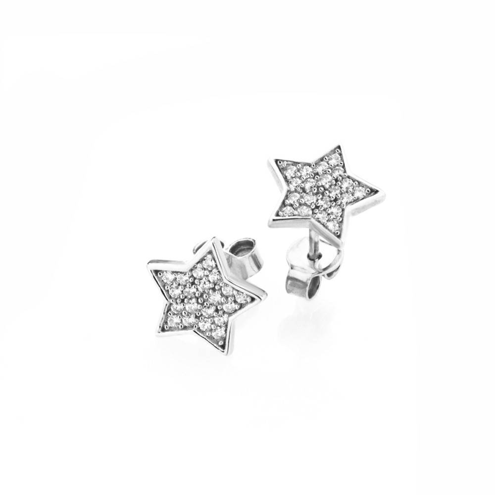 Women's earrings by Marcello Pane, featuring pavé-set zirconia stars, crafted from 925% silver with a white plating. Butterfly clasp.