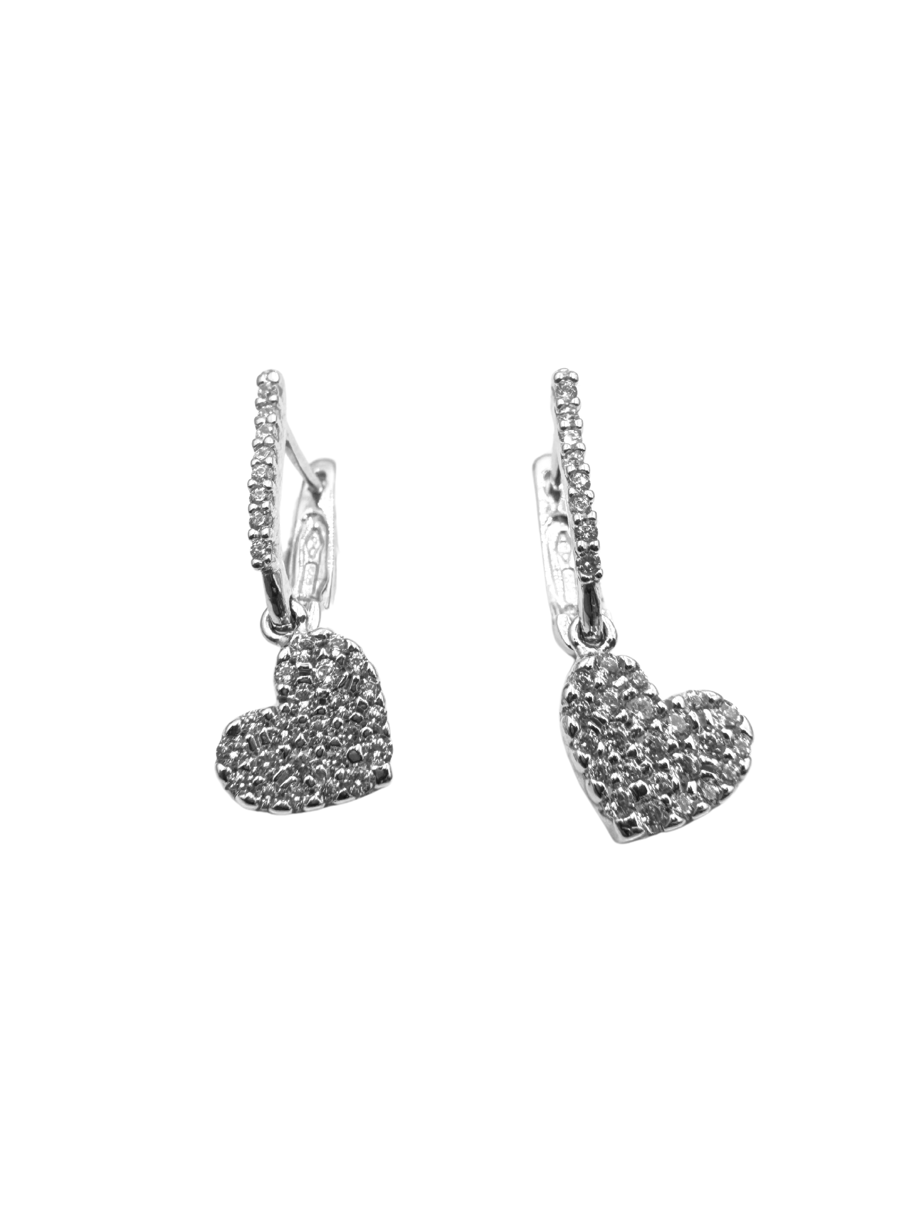 18KT White Gold and Zirconia Heart Pendant Earrings