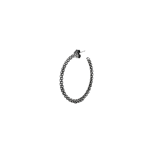 The Large Dotted Hoop Single Earring is part of the Puntinati Collection and is crafted from 925 silver. Like all Nove25 jewelry, these earrings are designed and crafted entirely in Italy using the most modern technologies and hand-finished to ensure maximum detail and the highest quality. This piece features a Polished Burnished finish and is available in one size.