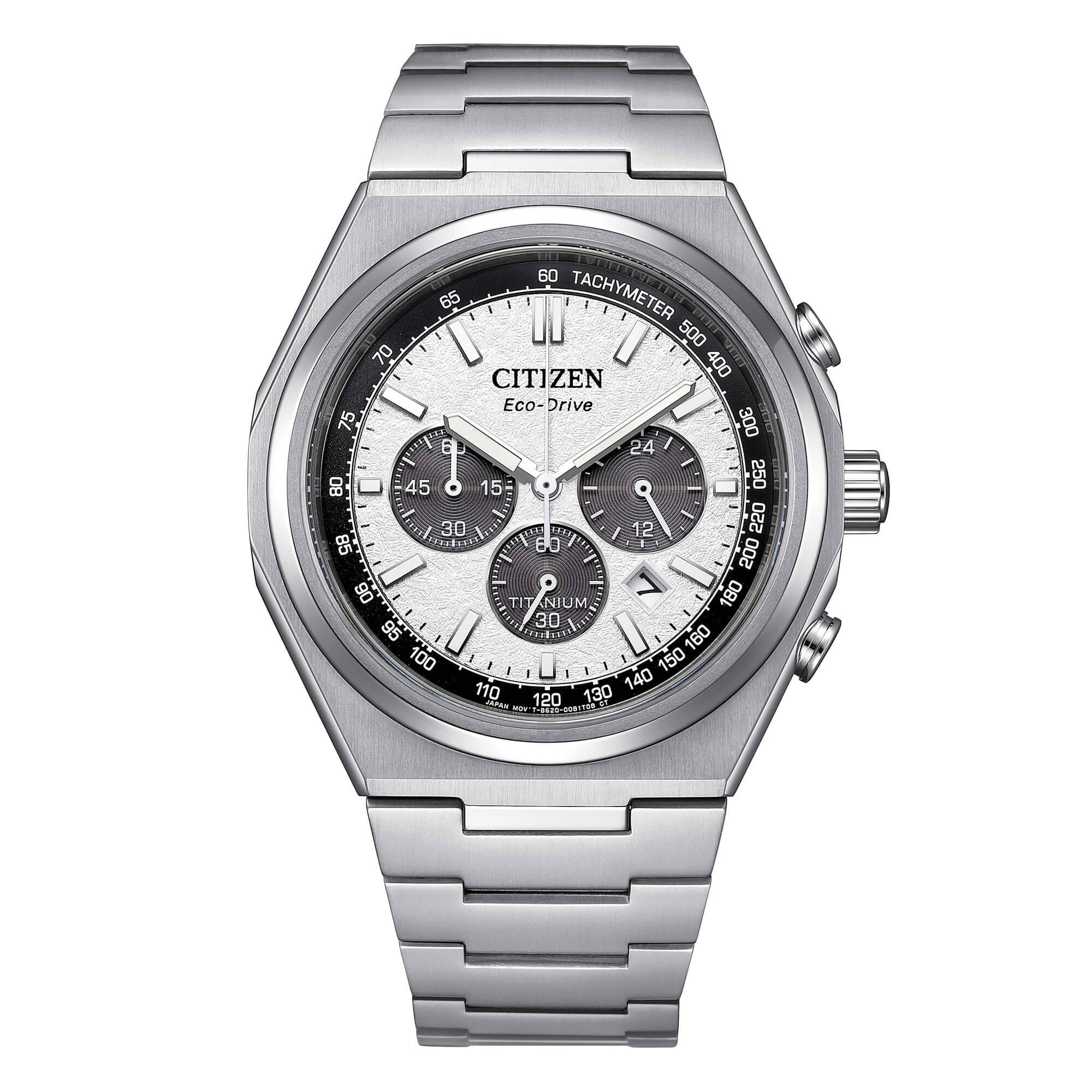 Citizen Chrono SuperTitanium watch, reference CA4610-85A. Eco-Drive movement cal. B620 (infinite light power), 270-day power reserve. 42.5 mm Super Titanium case, screw-down case back. Sapphire crystal. Silver dial with luminescent indexes and hands. Date display at 4/5 o'clock. Super Titanium bracelet with deployment clasp. WR 10 Bar.