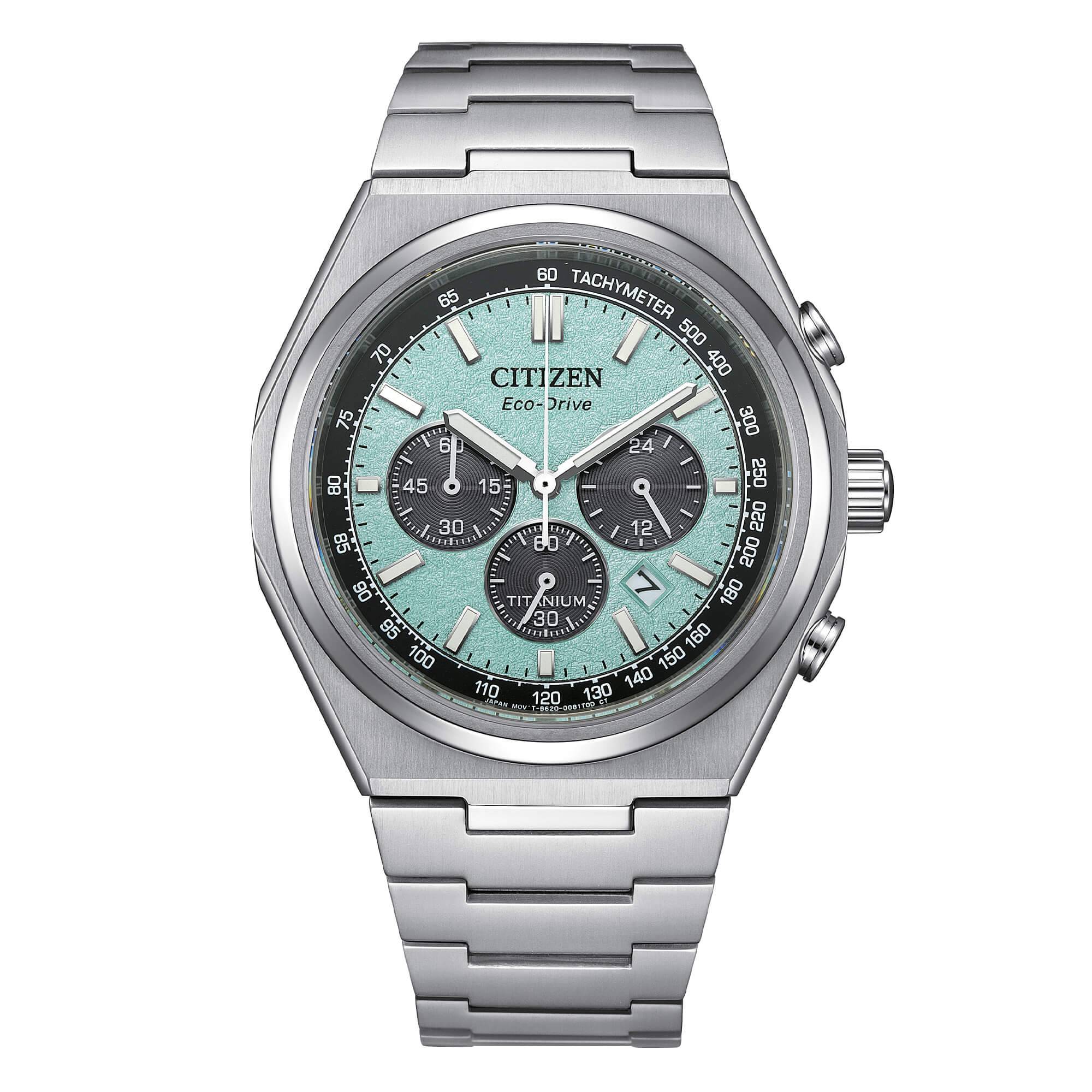 Citizen Chrono SuperTitanium watch, reference CA4610-85MM. Eco-Drive movement cal. B620 (infinite light power), 270-day power reserve. 42.5 mm Super Titanium case, screw-down case back. Sapphire crystal. Blue dial with luminescent indexes and hands. Date display at 4/5 o'clock. Super Titanium bracelet with deployment clasp. WR 10 Bar.