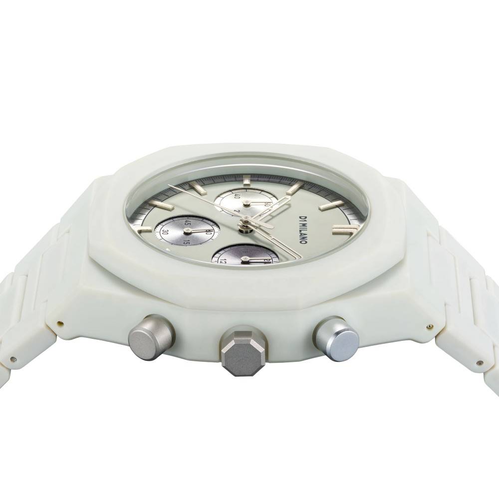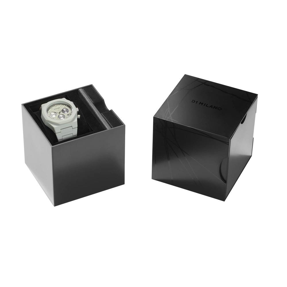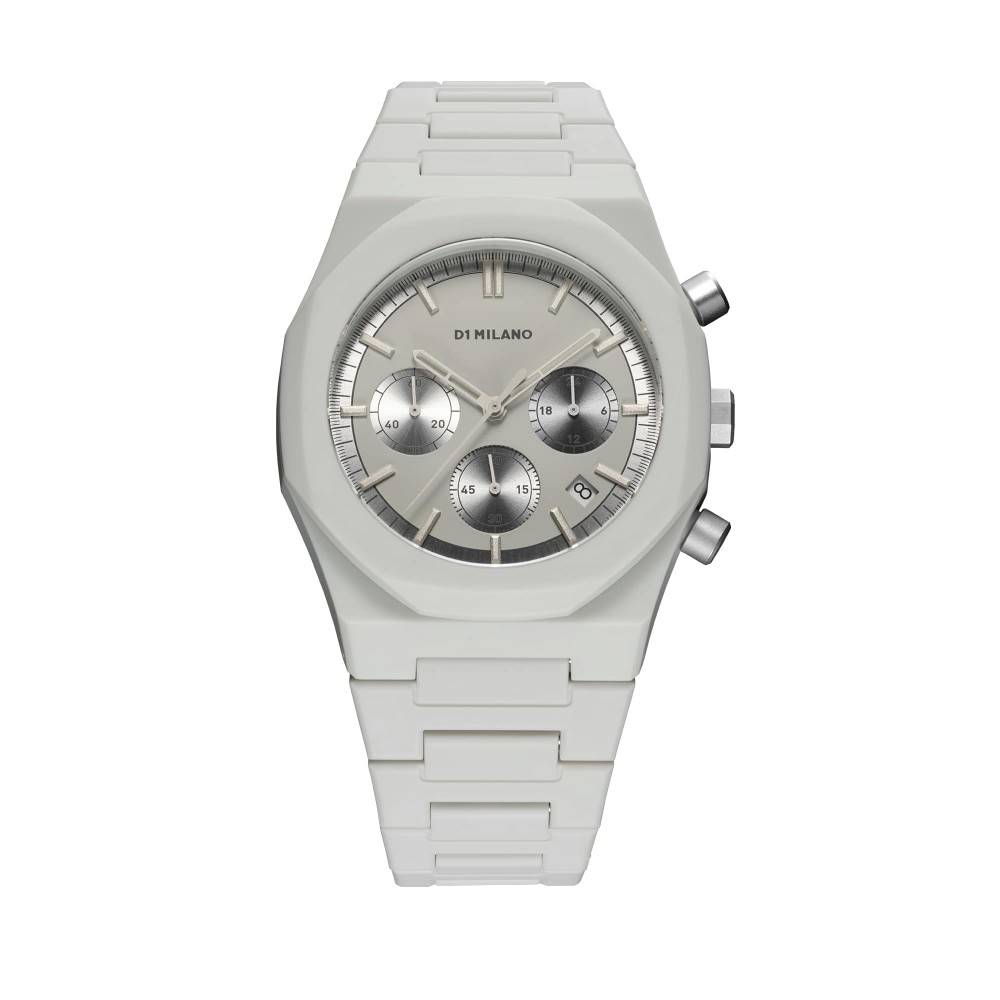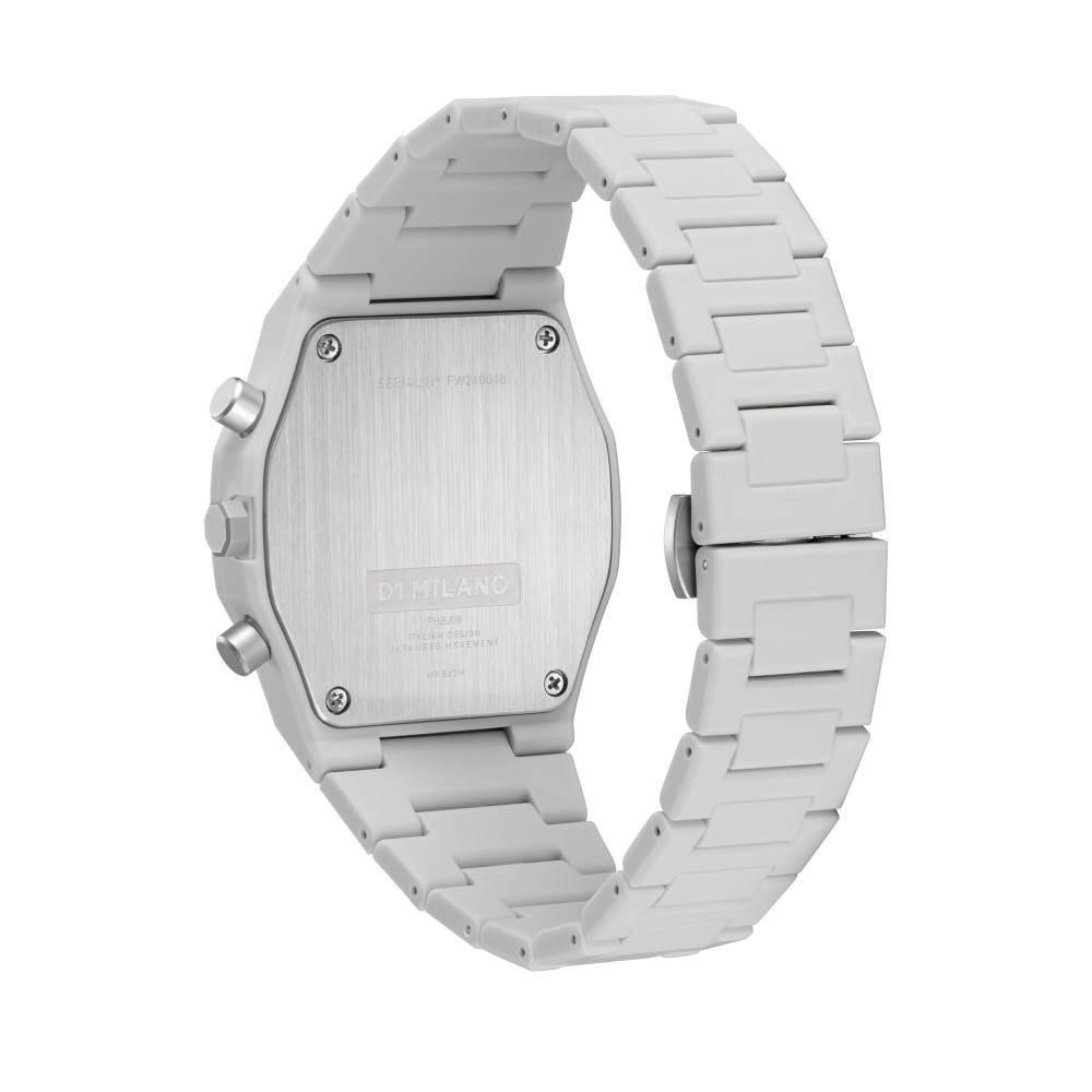 Fossil Grey stands out for its elegant, monochrome, and minimalist design. This watch boasts an all-gray polycarbonate case and bracelet. Precise details include tone-on-tone accents.
