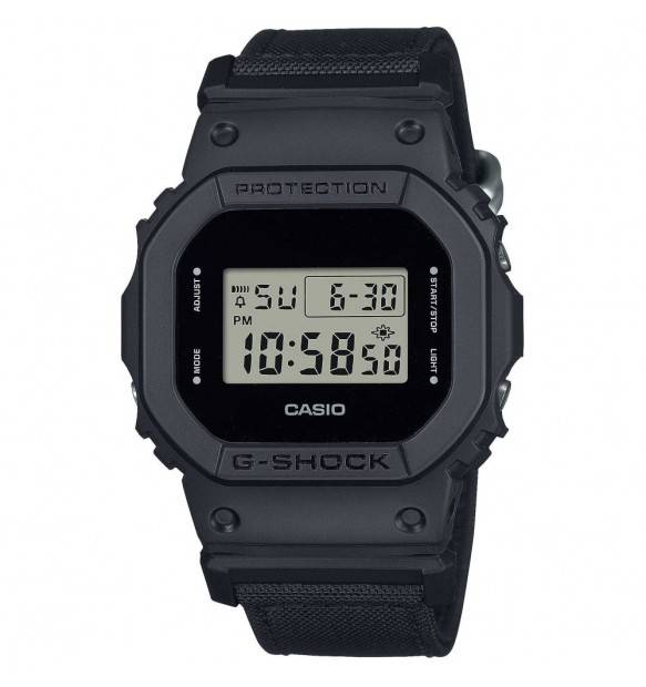 Practical yet eco-friendly, this G-SHOCK with resin case and fabric strap is perfect for all your needs. The all-black design is complemented by a strap made of eco-friendly Cordura nylon, creating a modern and versatile look, suitable for both the office and leisure. You can choose between three models: the iconic DW-5600, the GA-2100 with an octagonal case, or the GA-700 with a bold case.