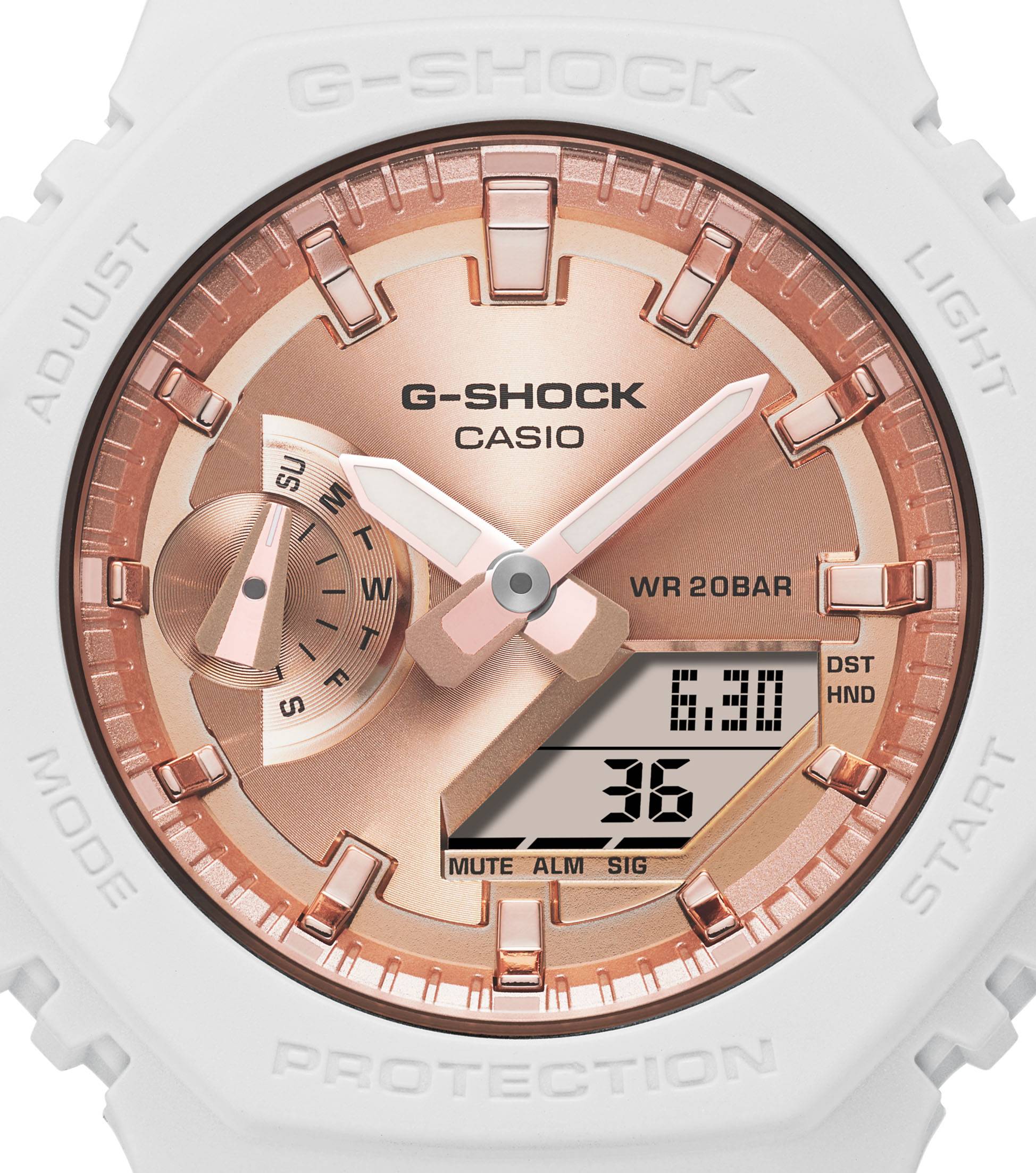 Add a touch of originality to your wrist by wearing the G-SHOCK with rose gold accents. These GMA-S2100 watches feature a dial finished with rose gold accents for a clean, minimalist, and sparkling look.