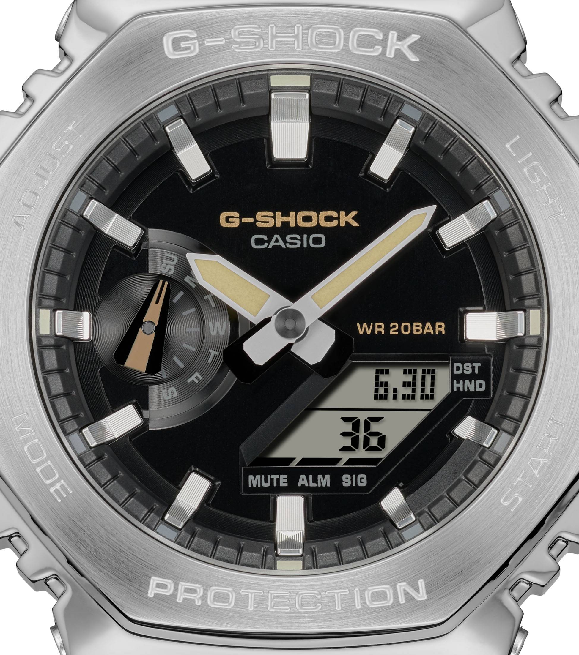 The G-SHOCK GM-2100 evolves with a new model featuring a fabric strap. The iconic octagonal stainless steel case features a new olive green fabric strap that makes the watch more casual and suitable for any outfit. The contrast between steel and fabric characterizes this new GM-2100 and makes it super cool.