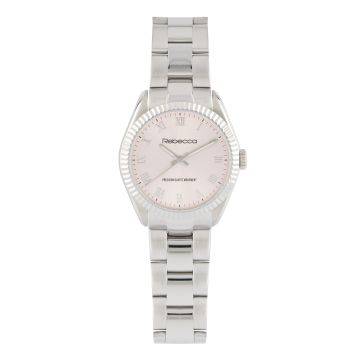 Steel watch. 35 mm case. Pink dial with mineral crystal. Water resistant to 5 ATM.